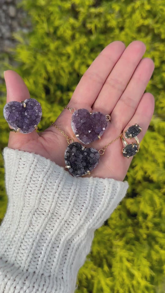 Oversized amethyst crystal slice crescent moon cuff bracelet