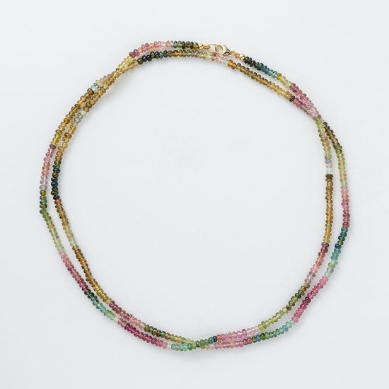 14-karat gold rainbow tourmaline double wrap necklace