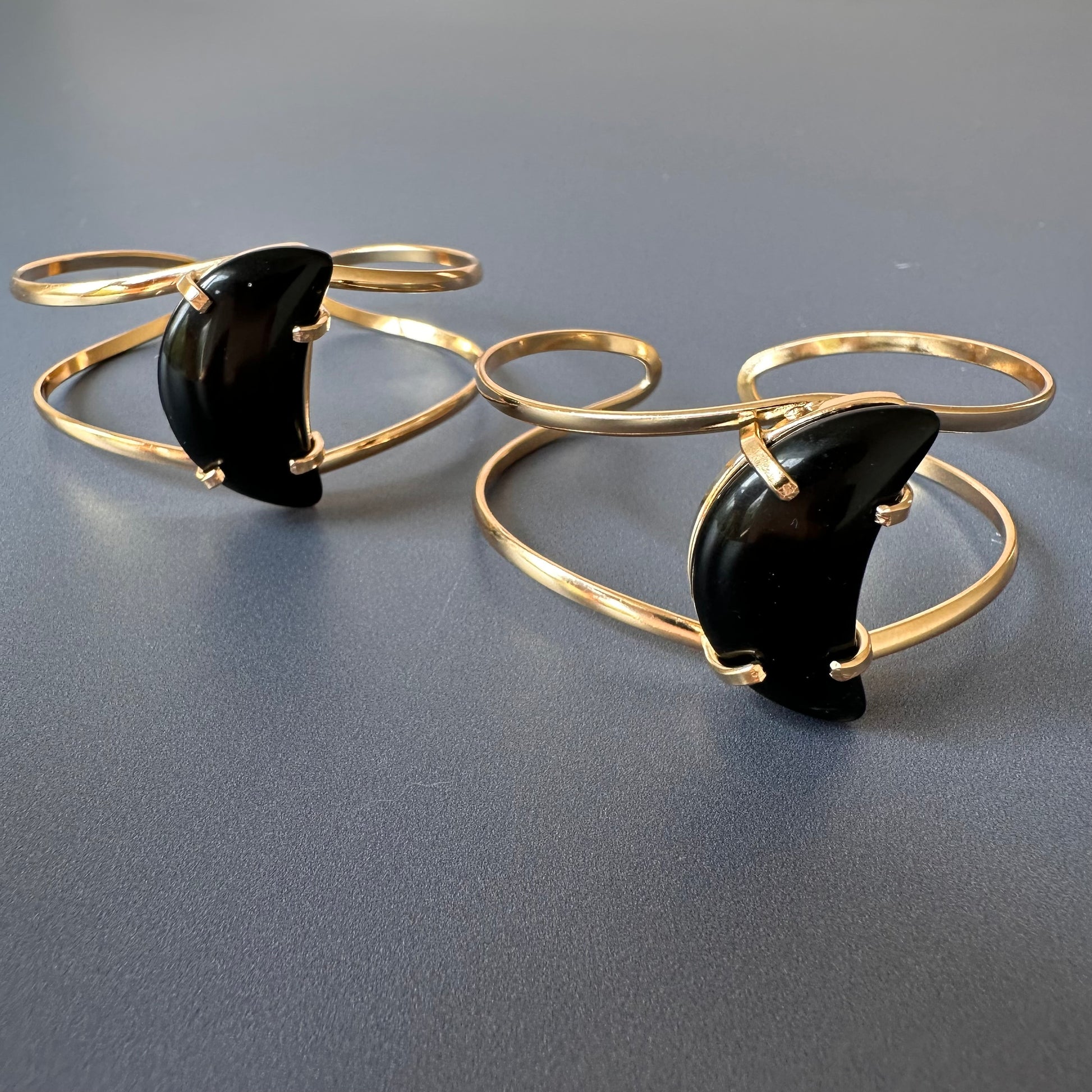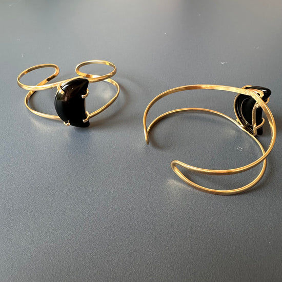 Black onyx crescent moon cuff bracelet
