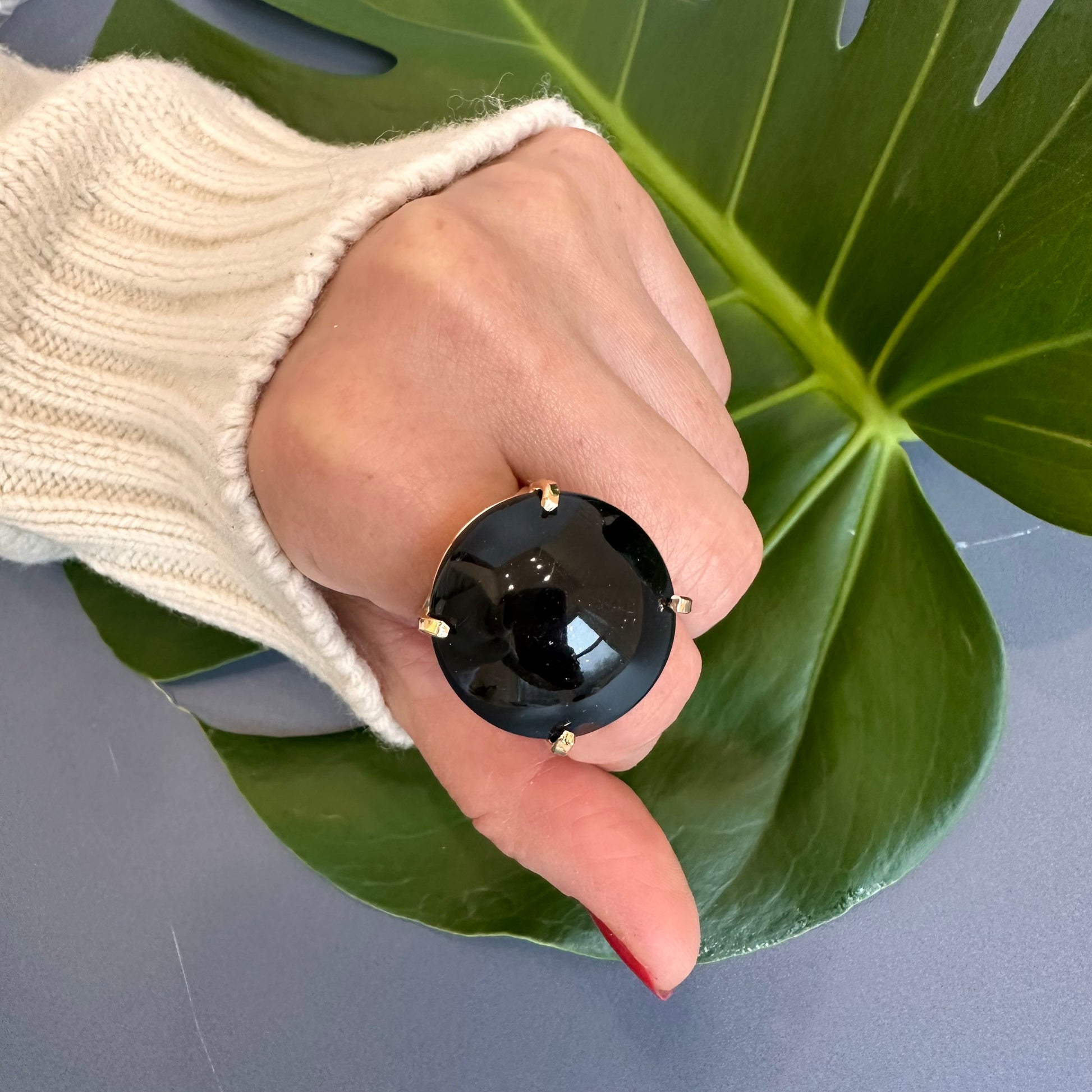 Black onyx round ring