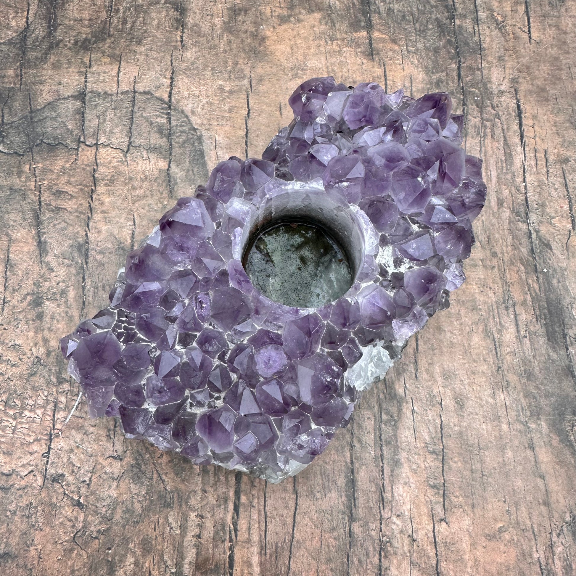 Druzy amethyst tea light candle holder