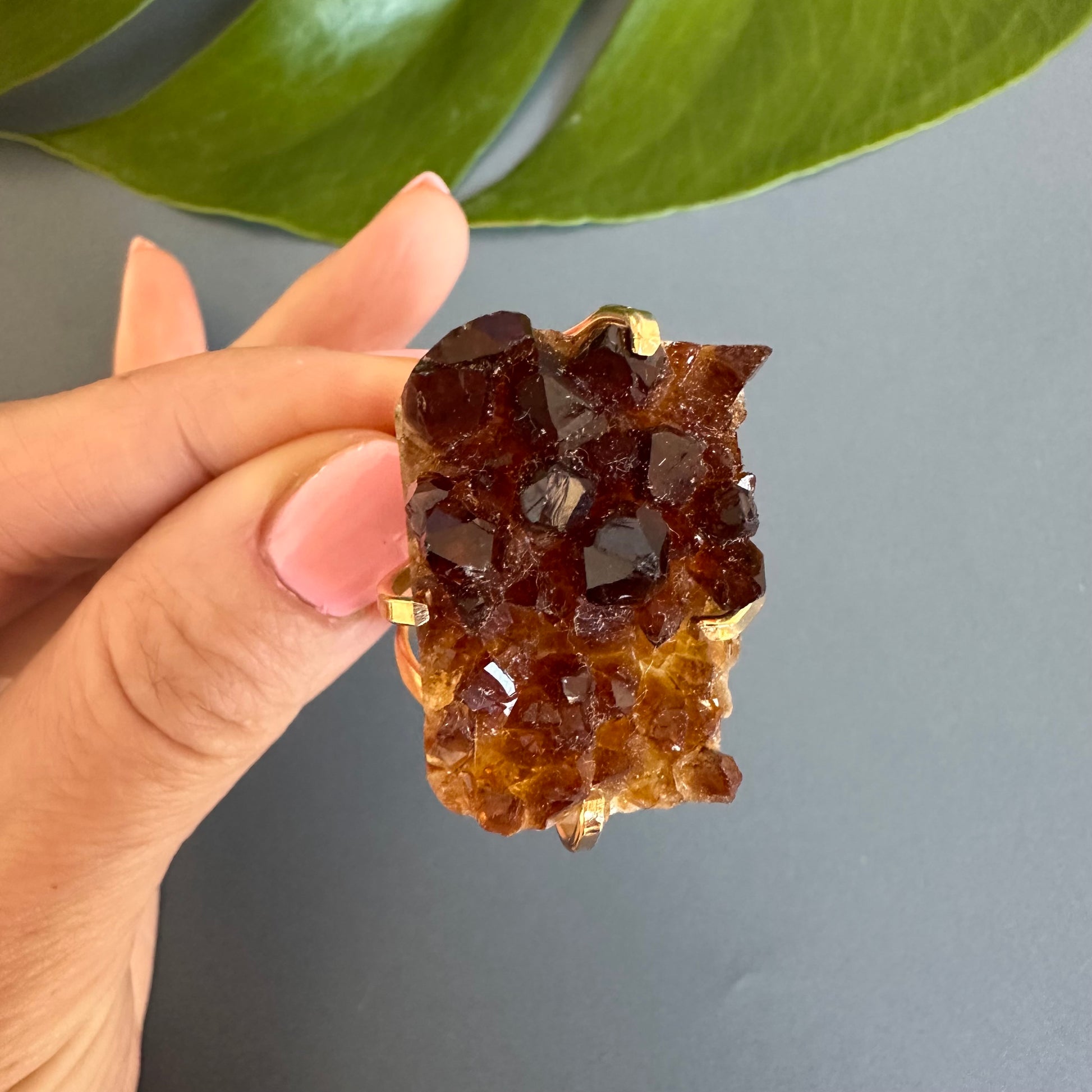 Druzy citrine cluster cocktail ring