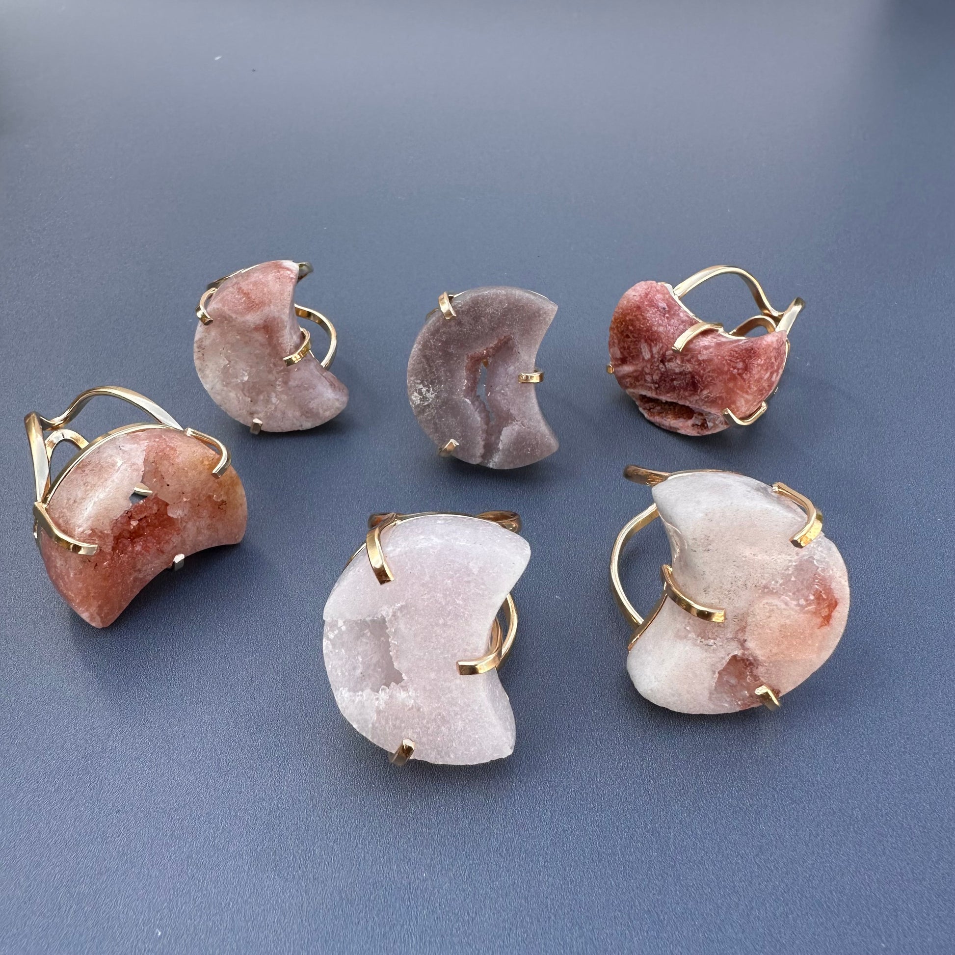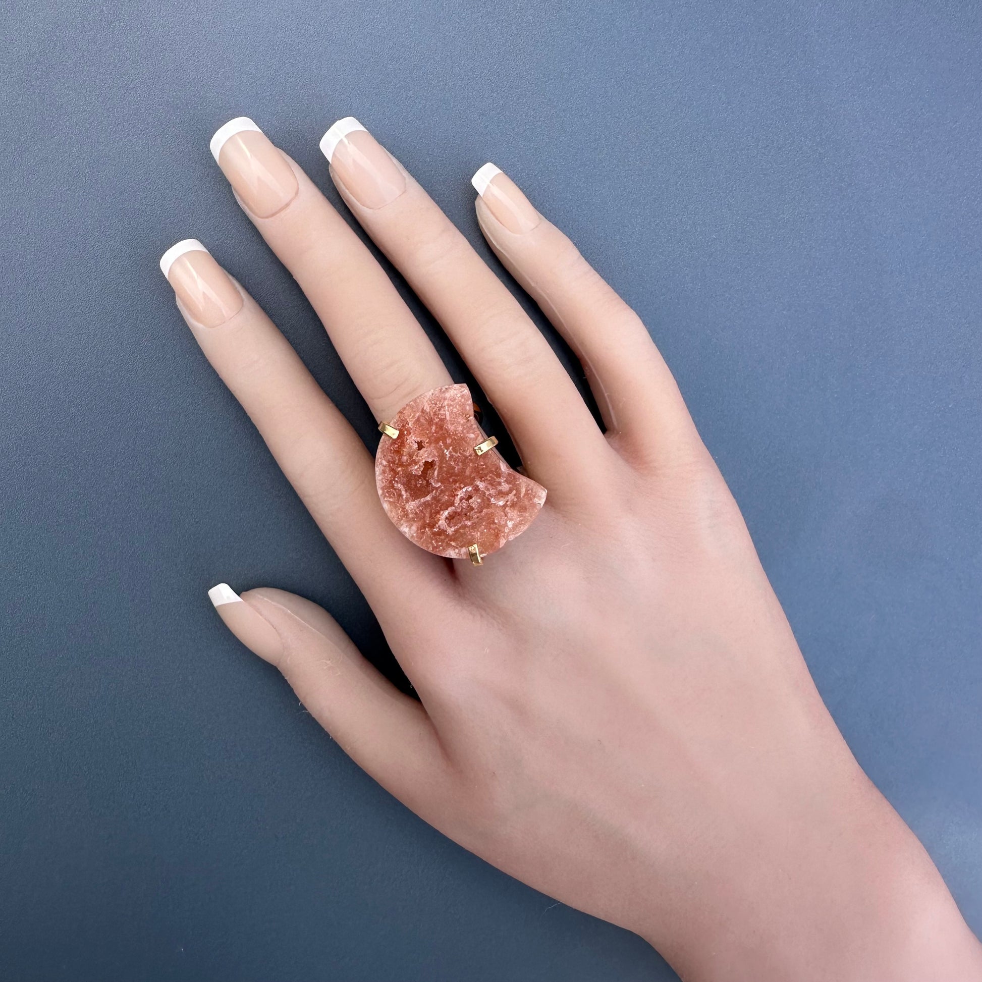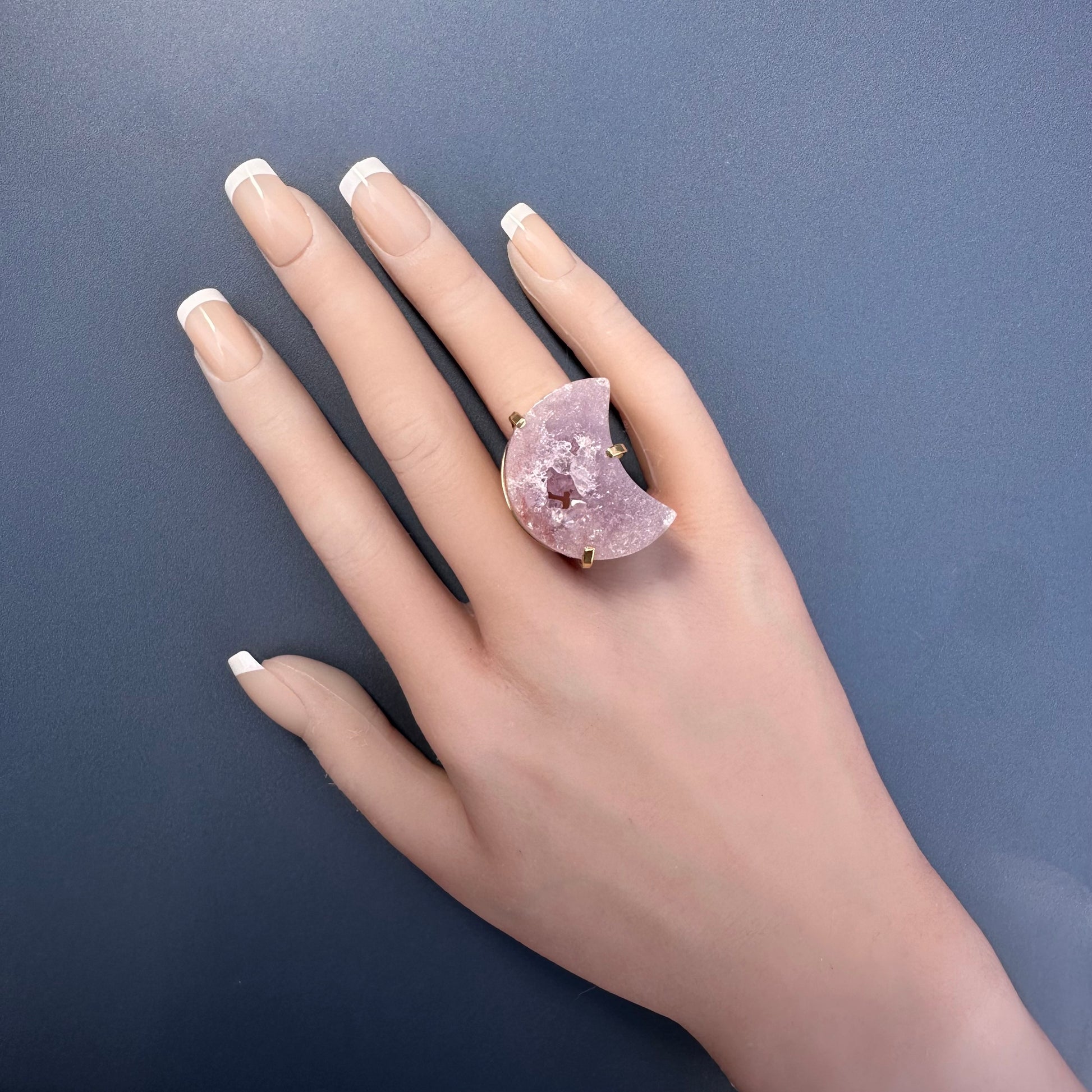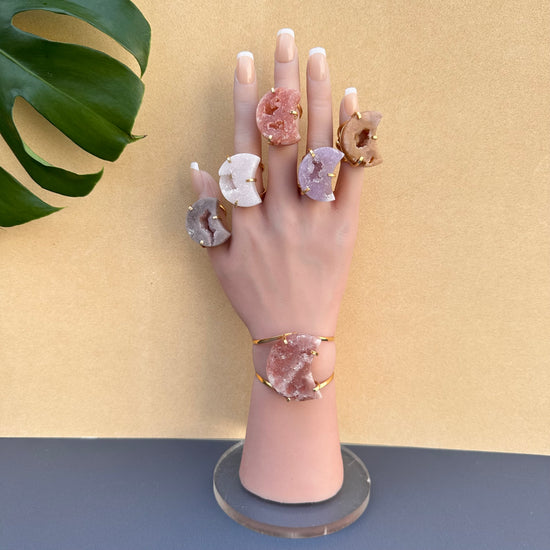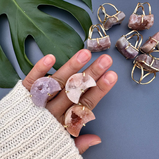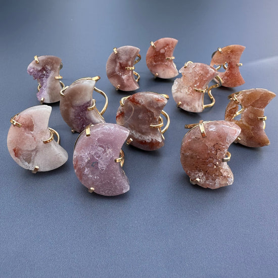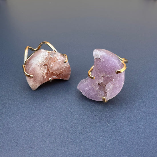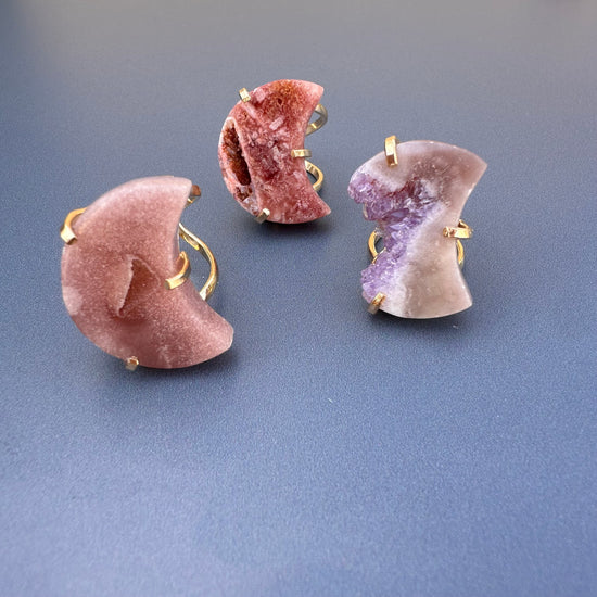 Druzy pink amethyst moon ring