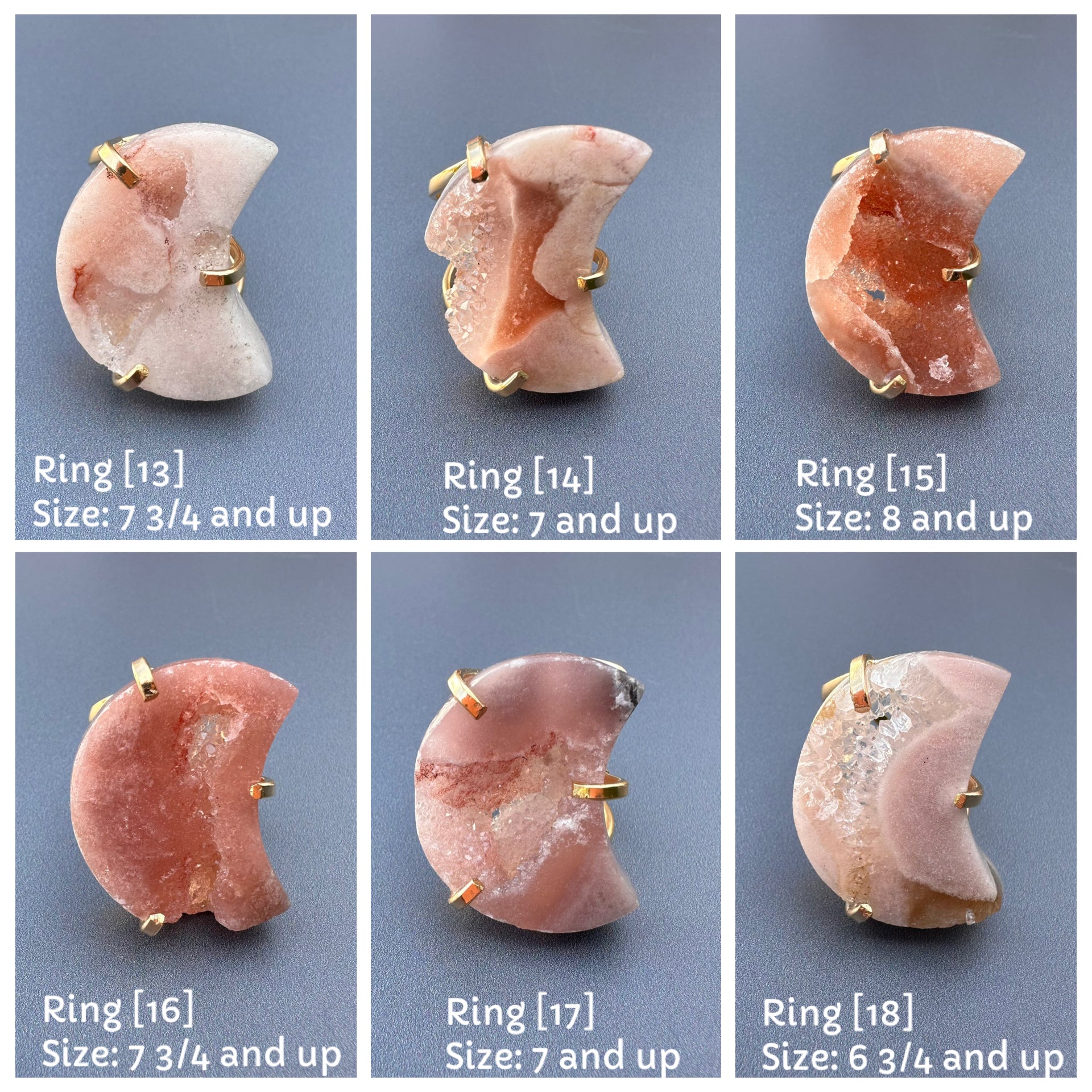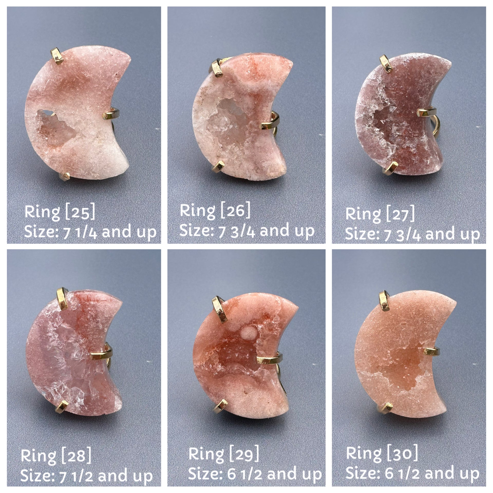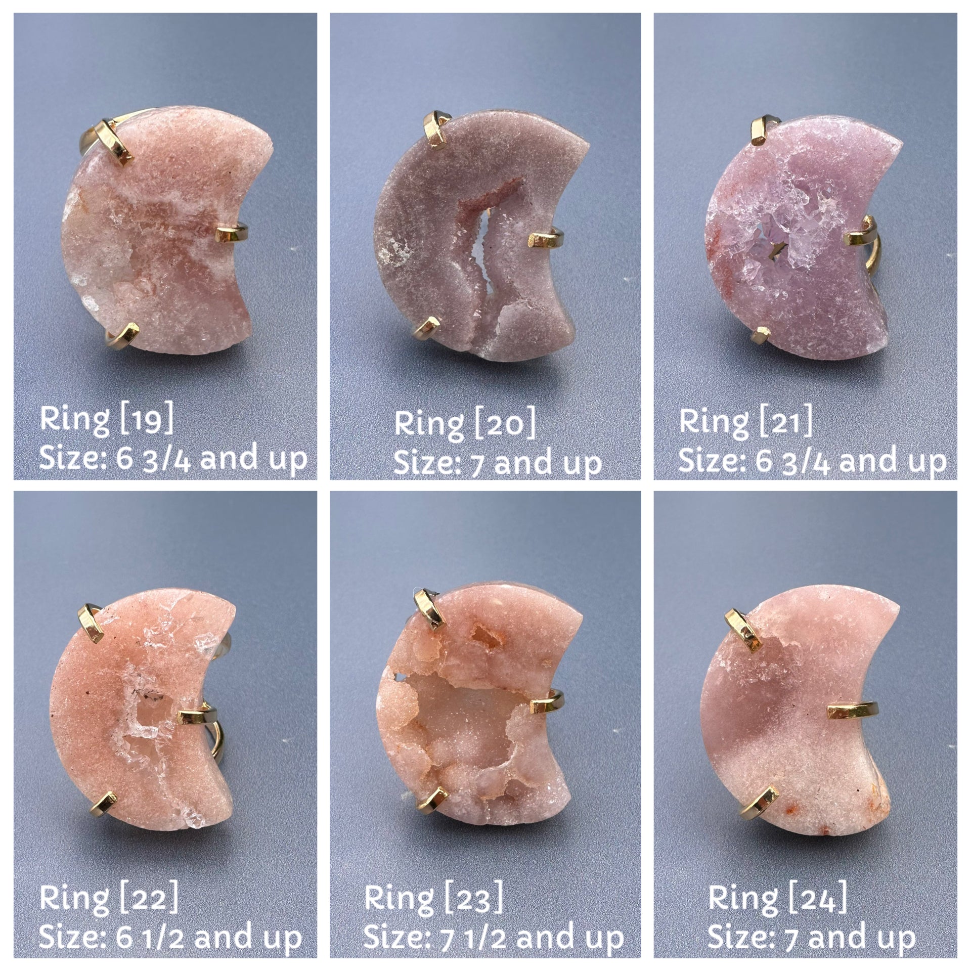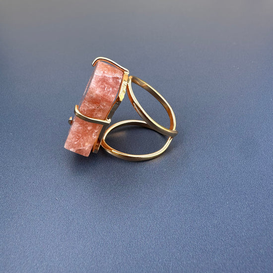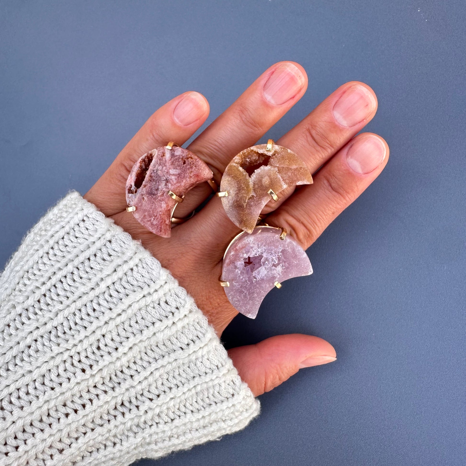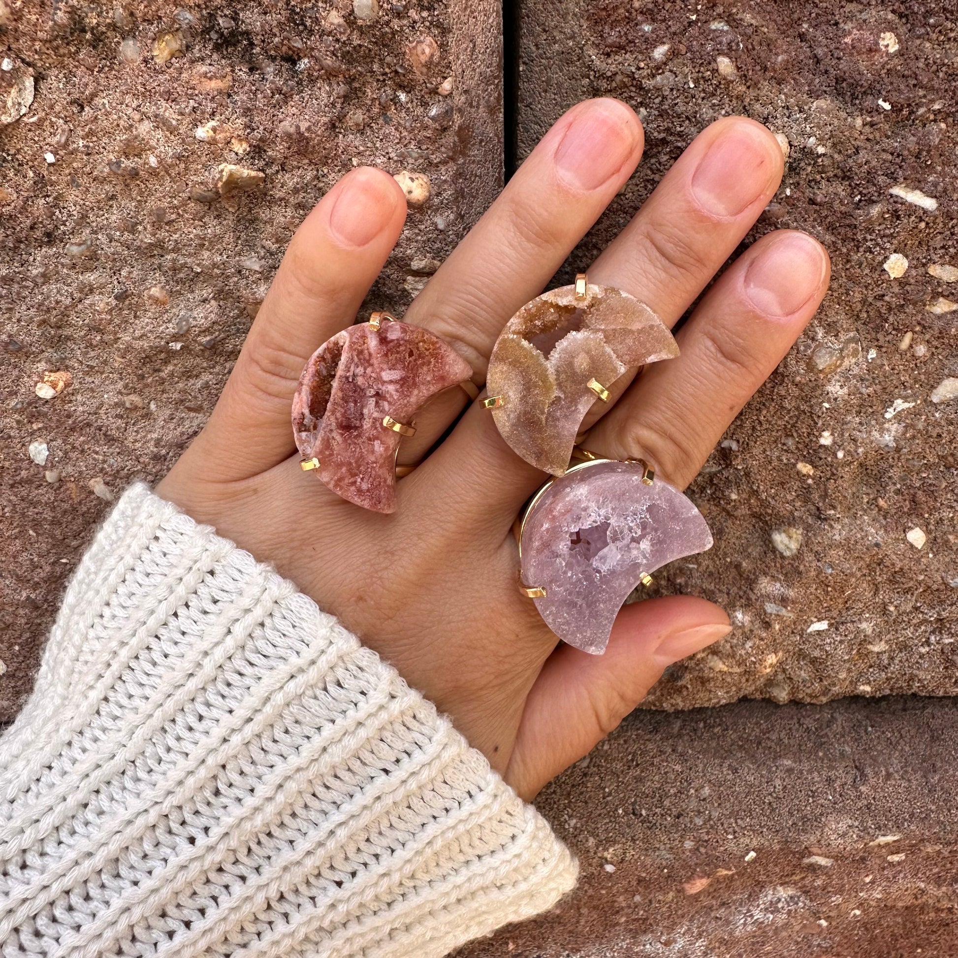 Druzy pink amethyst moon ring
