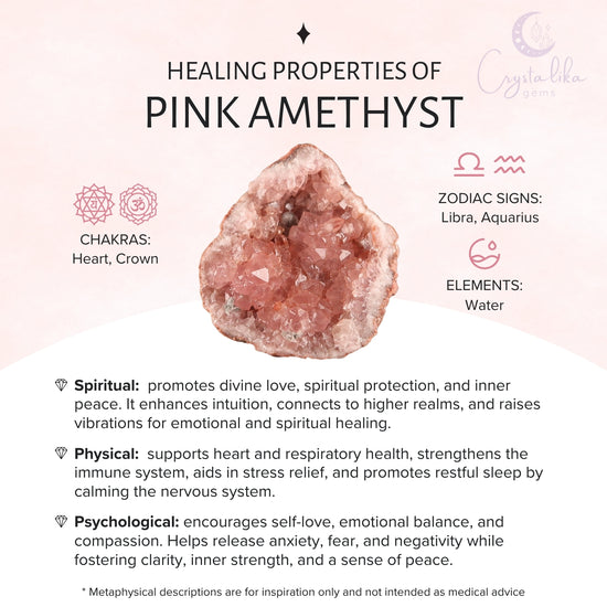 Spiritual: helps to heal past emotional wounds, embrace your inner self and reconnect with your inner child, elevates love to a spiritual level by connecting heart and crown chakras, opens your heart and mind to receive divine guidance through angelic connection