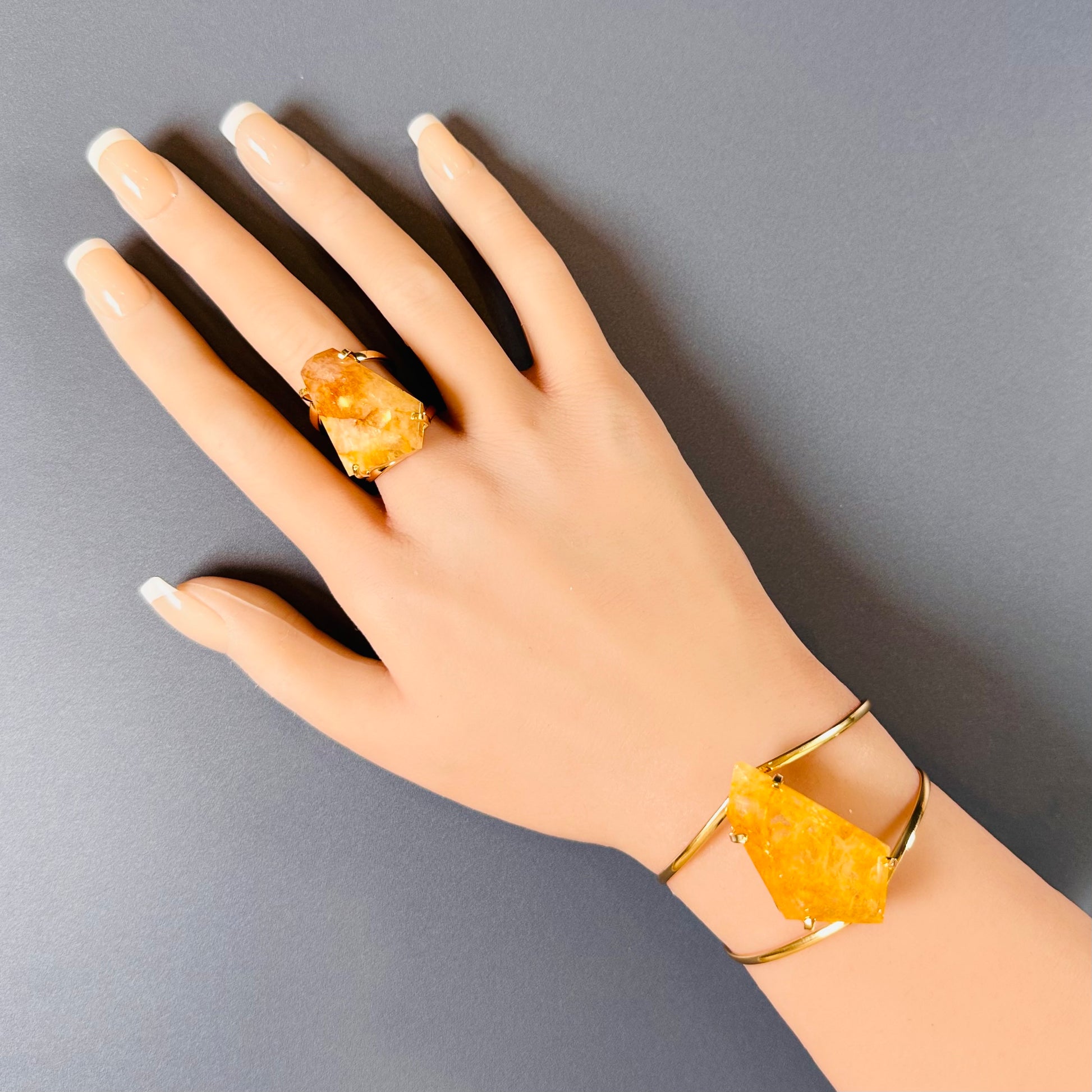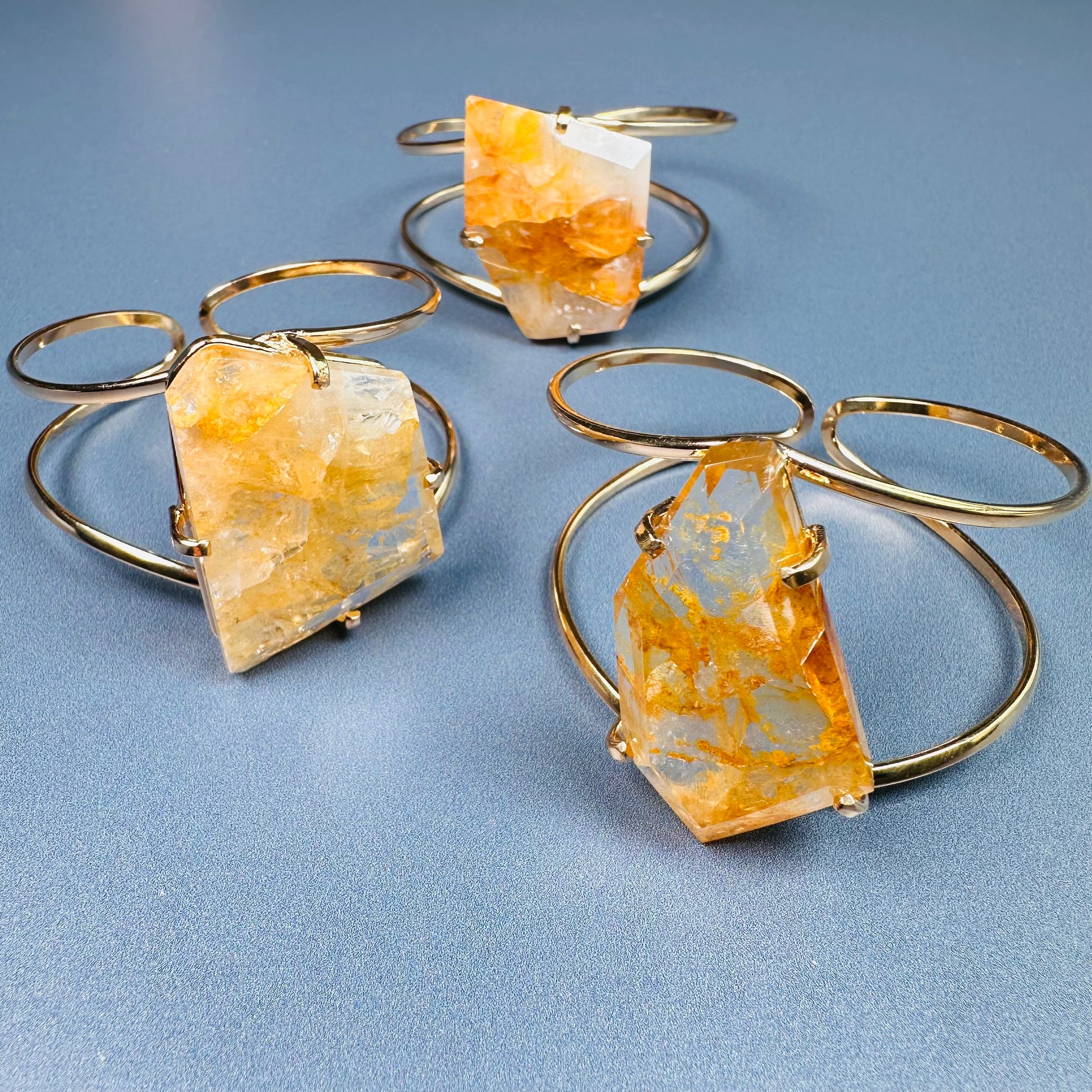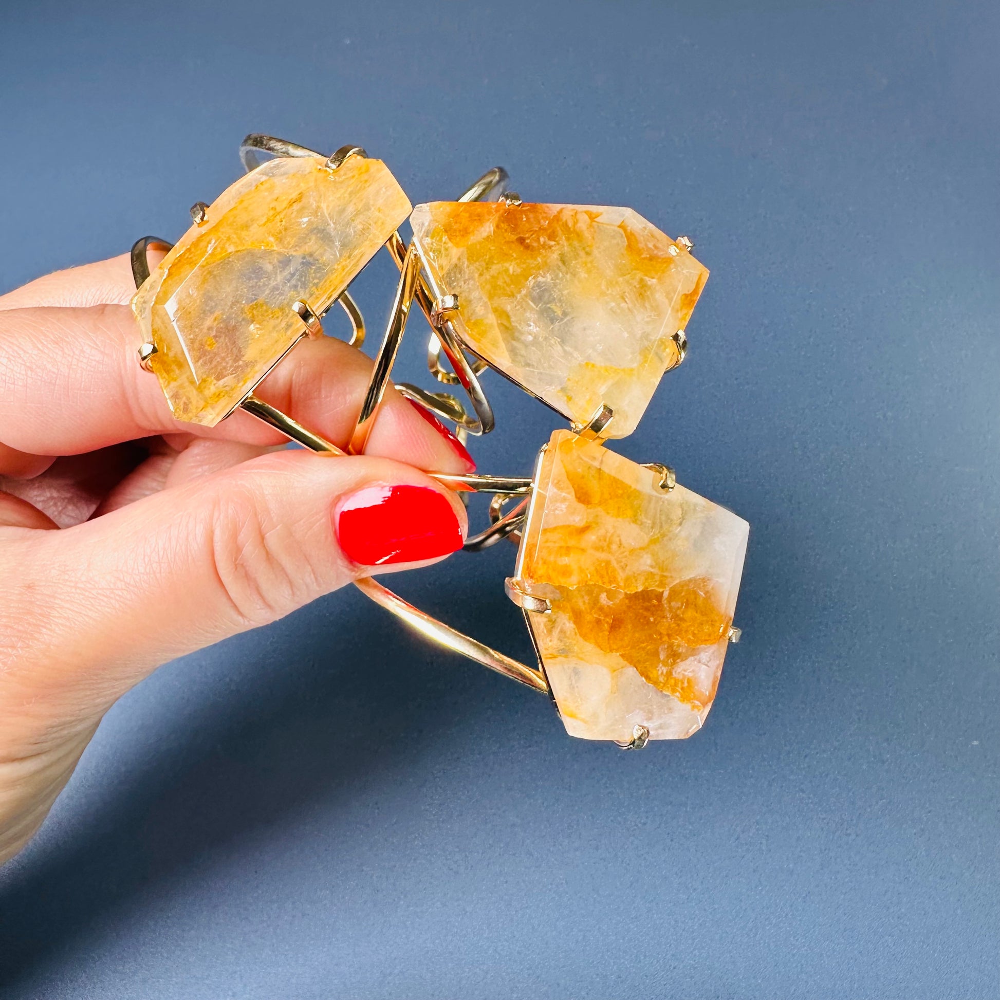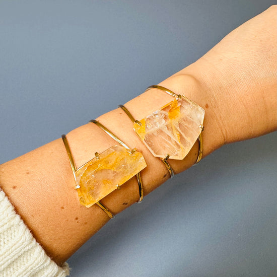 Golden healer freeform faceted cuff bracelet