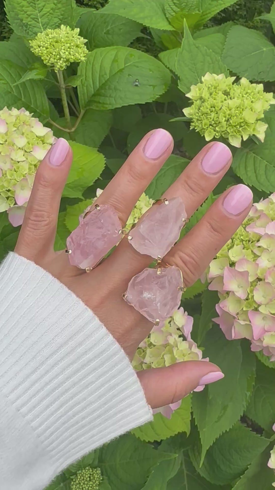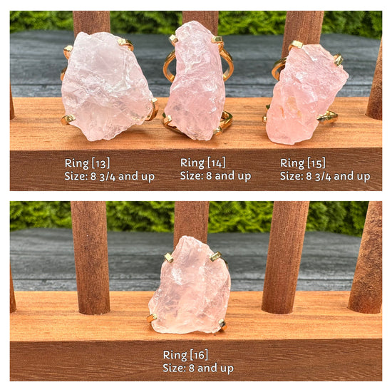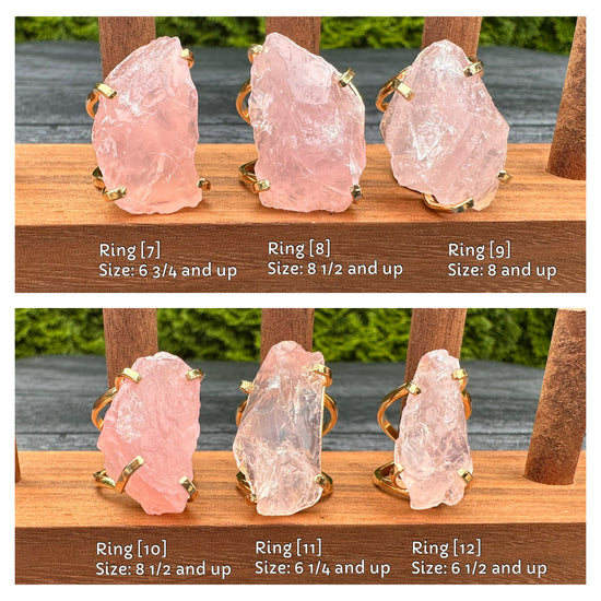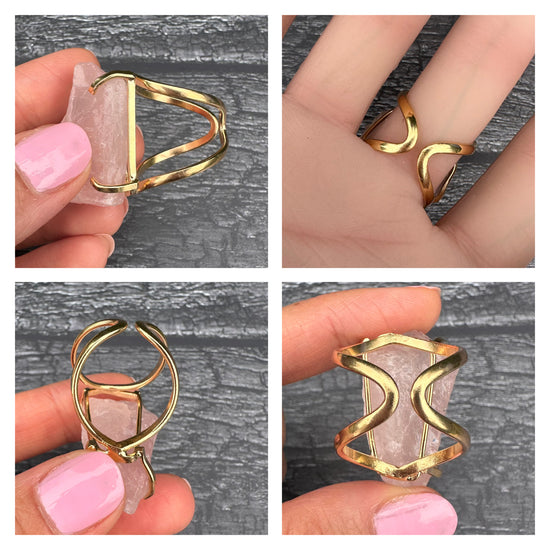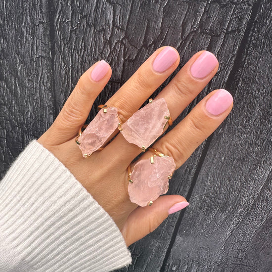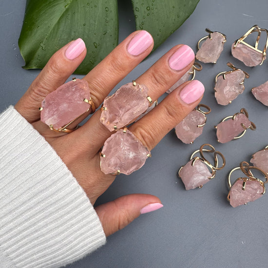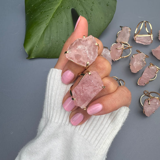 Large raw rose quartz gem ring