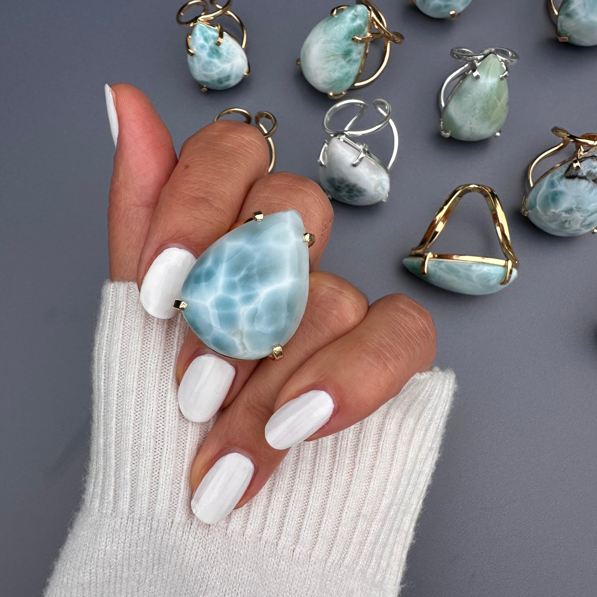 Larimar pear-shaped ring