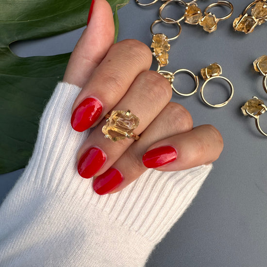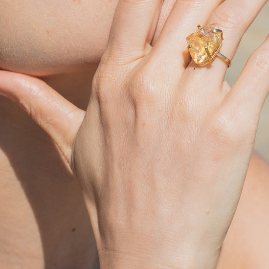 Mini raw citrine gem ring