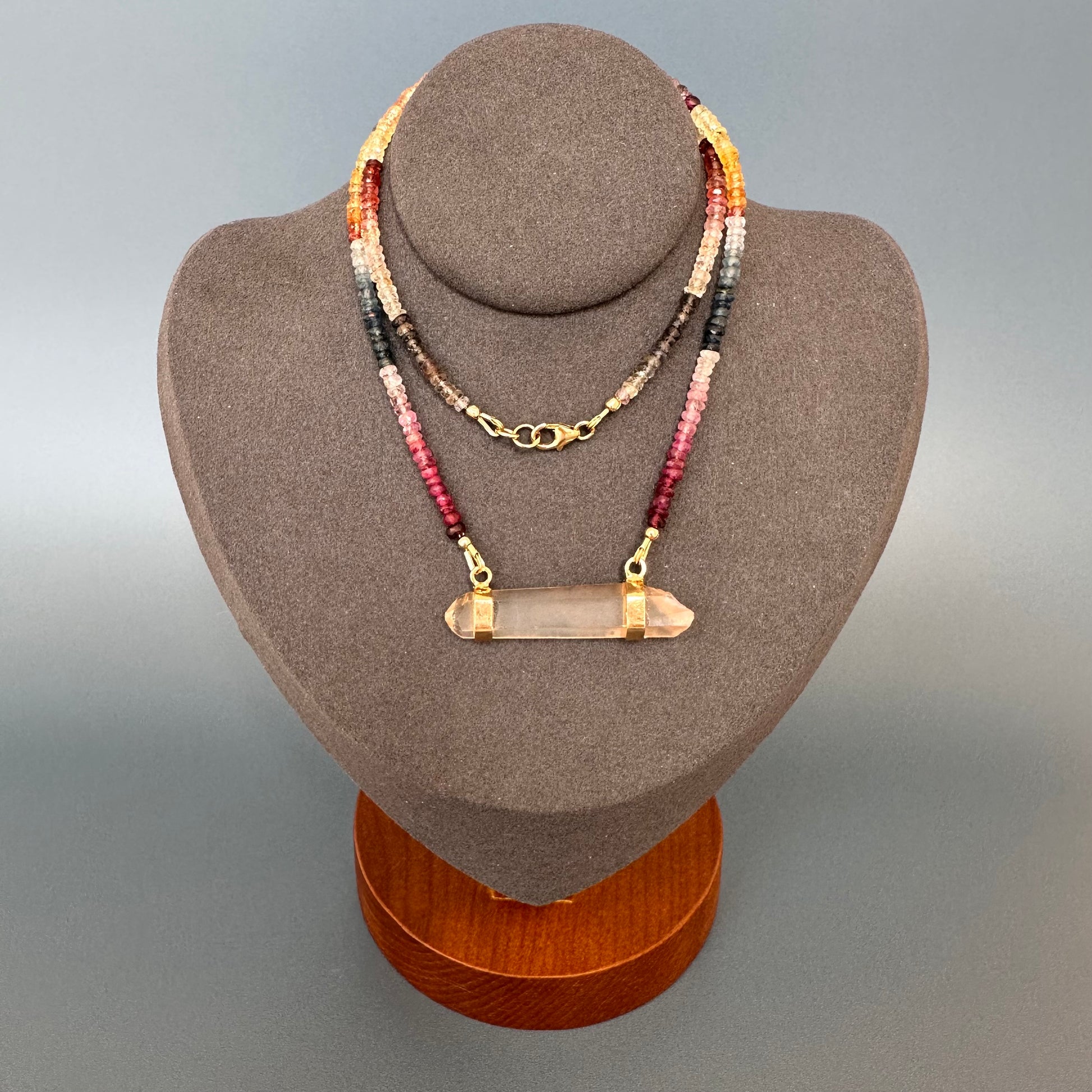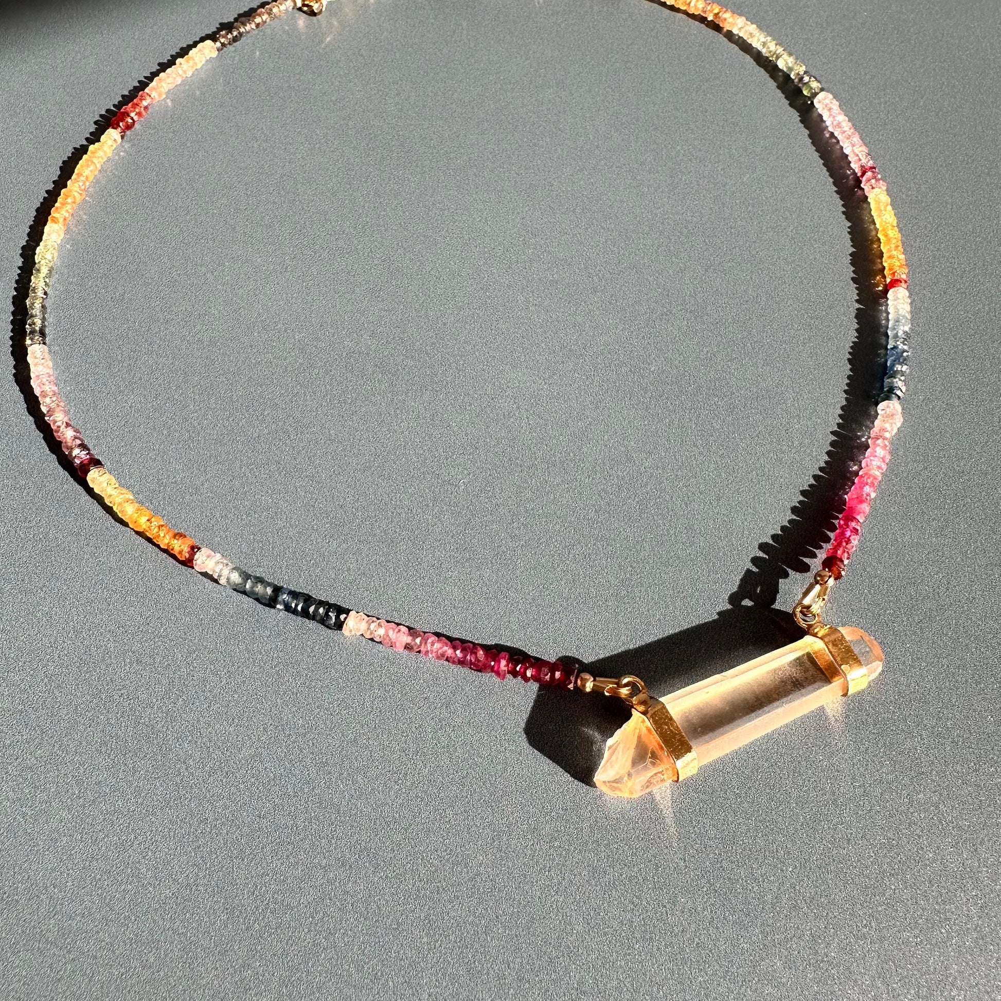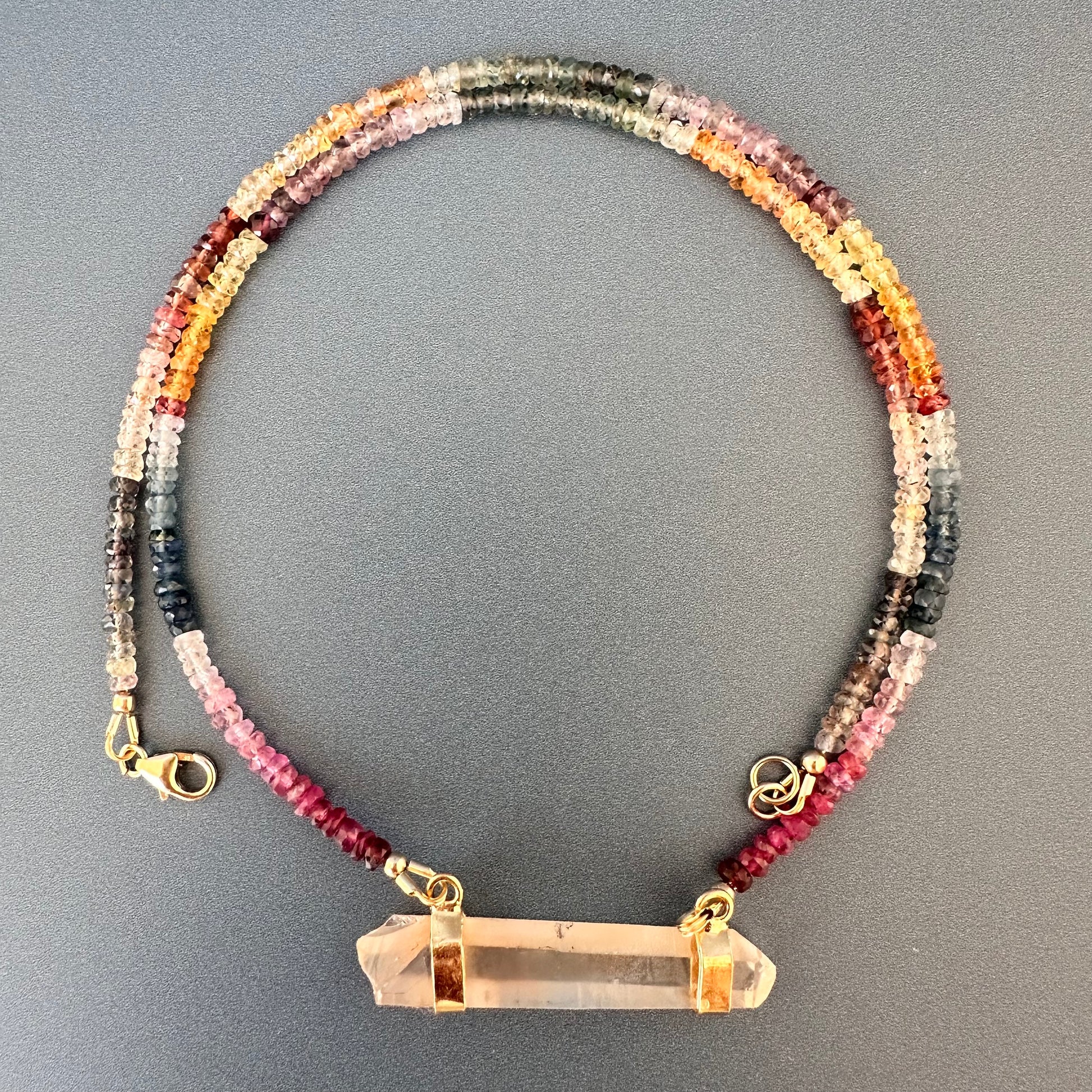 Multicolor sapphire necklace with pink lemurian horizontal connector