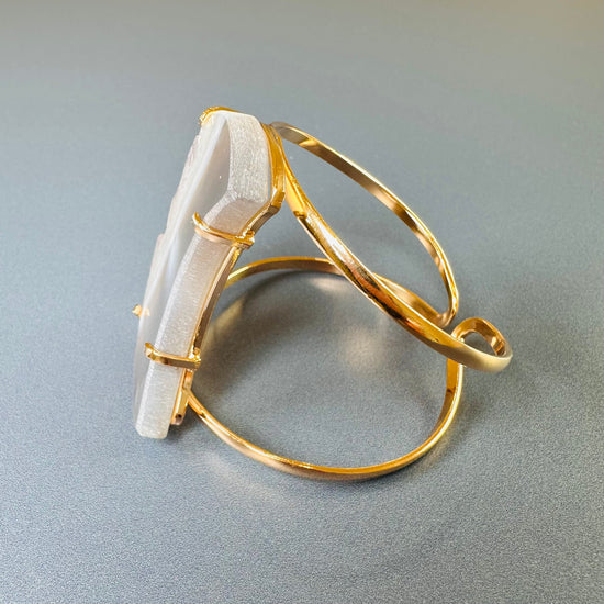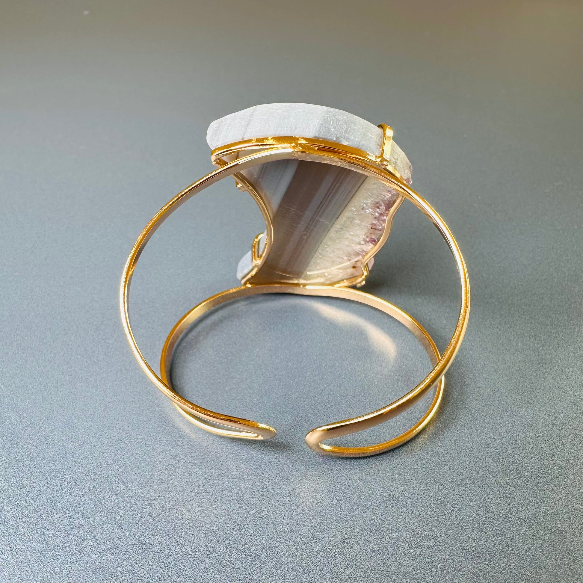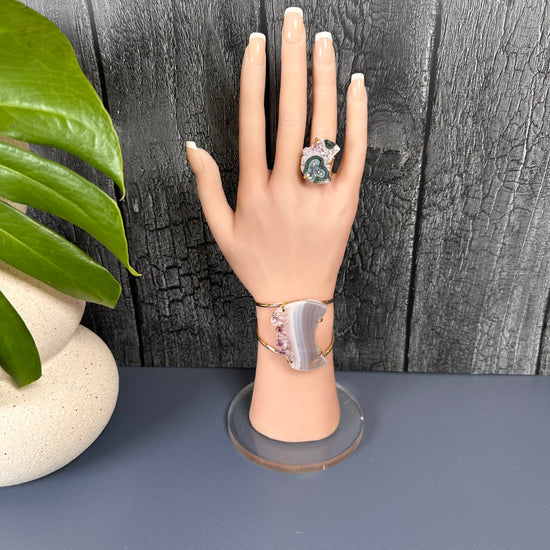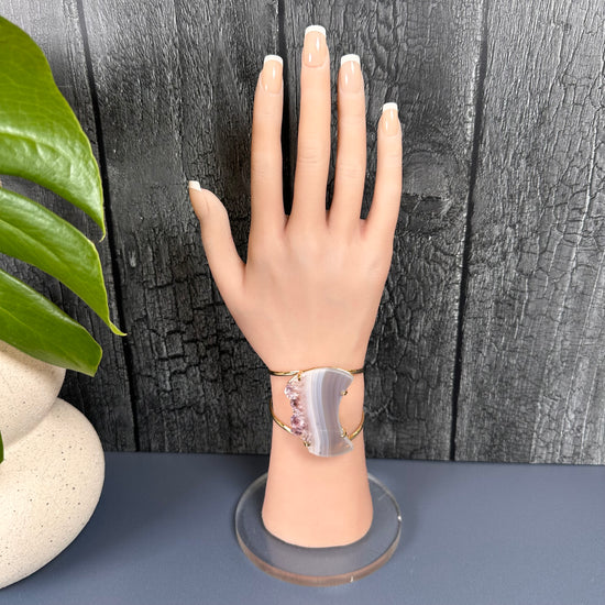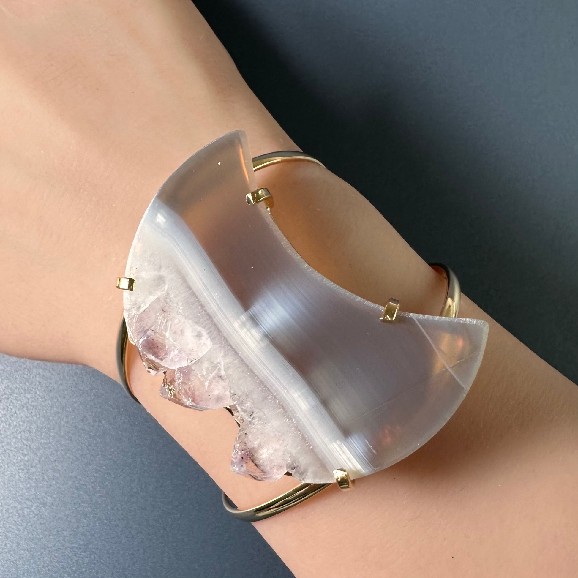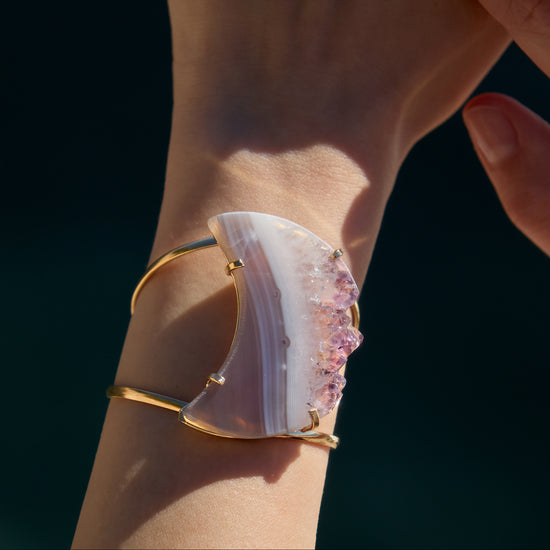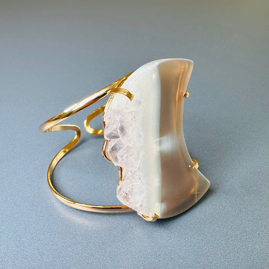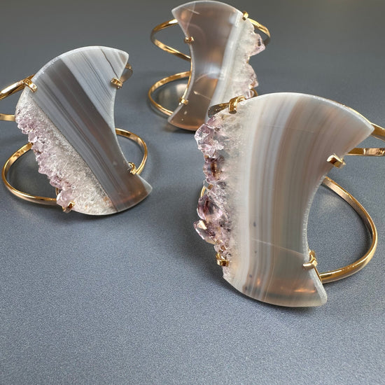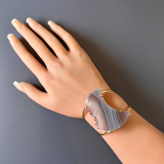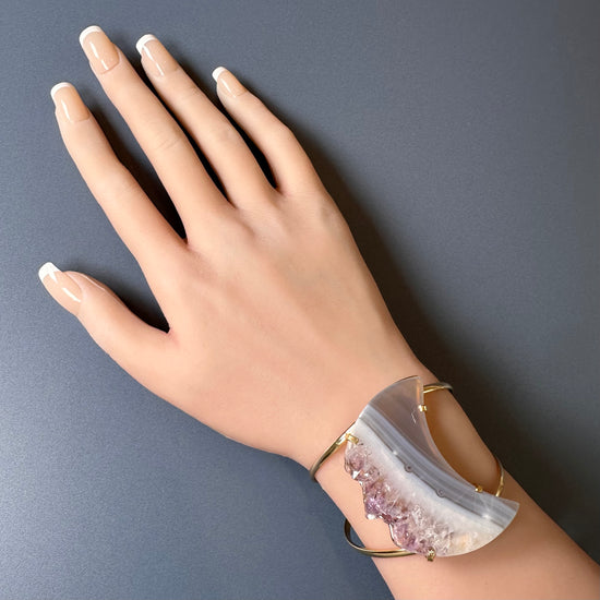 Oversized amethyst crystal slice crescent moon cuff bracelet
