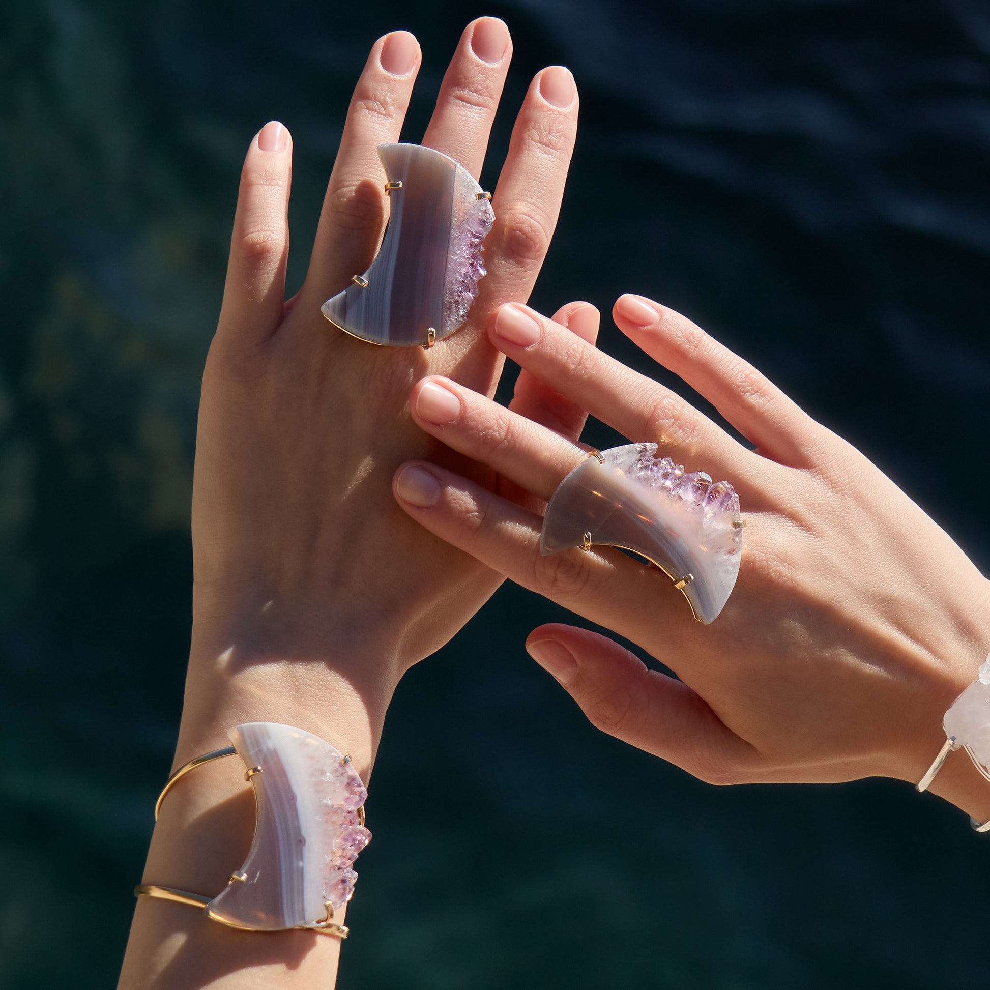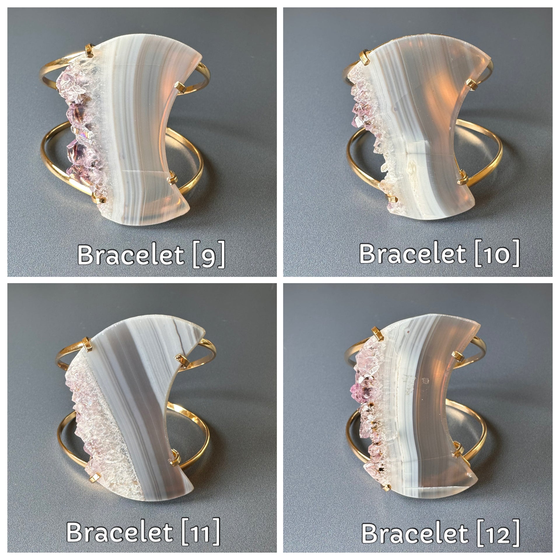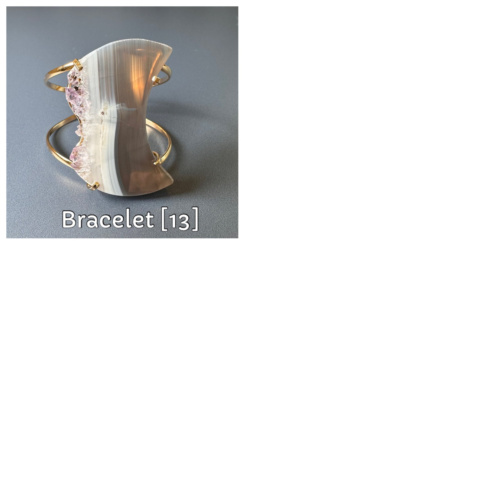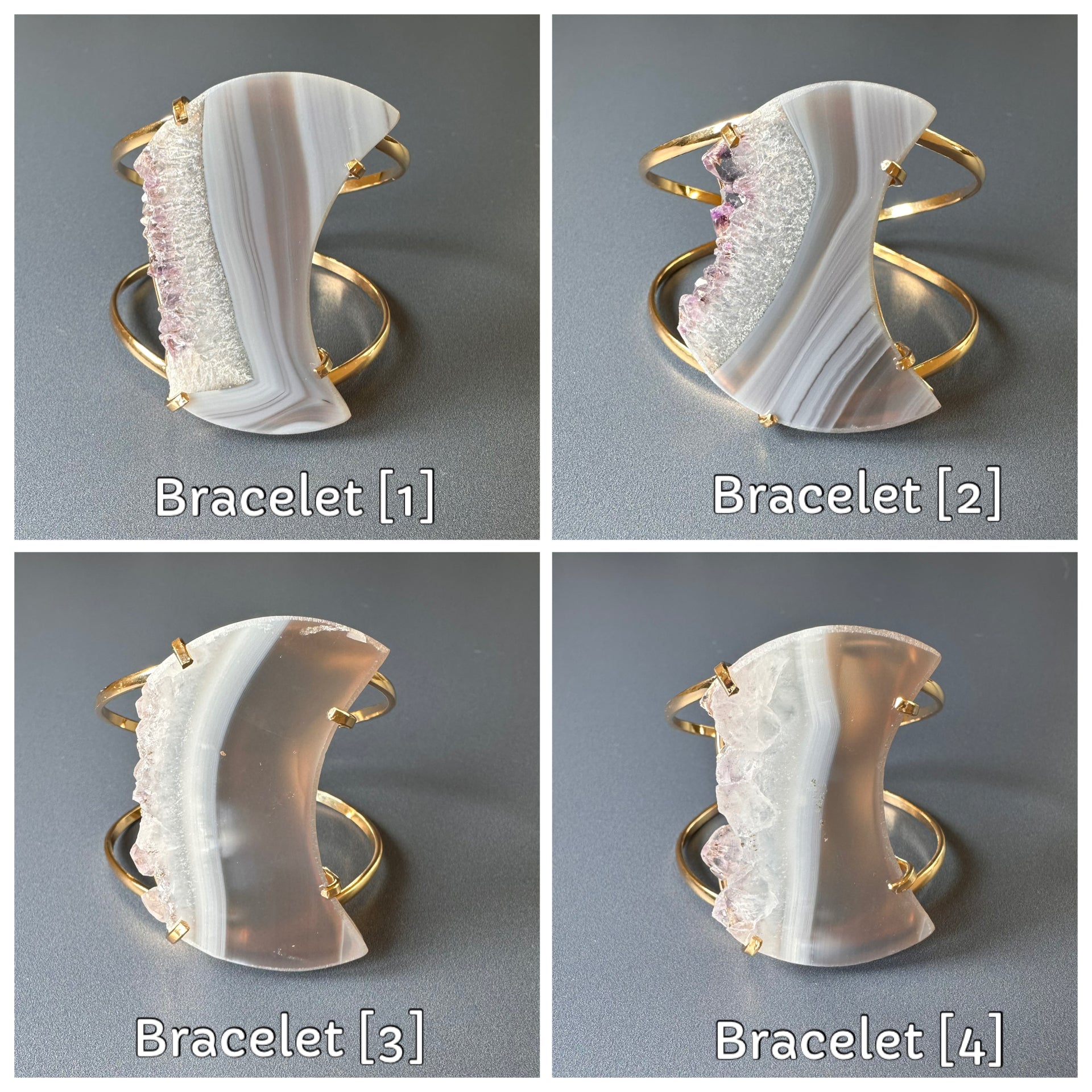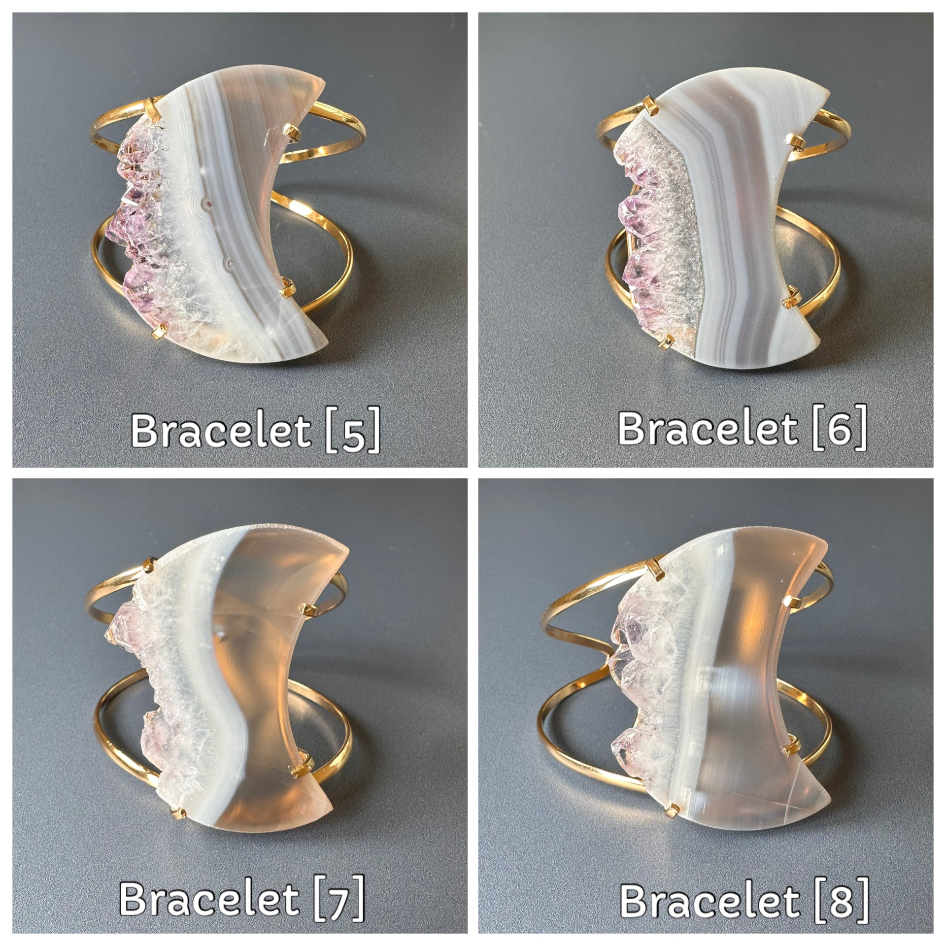 Oversized amethyst crystal slice crescent moon cuff bracelet