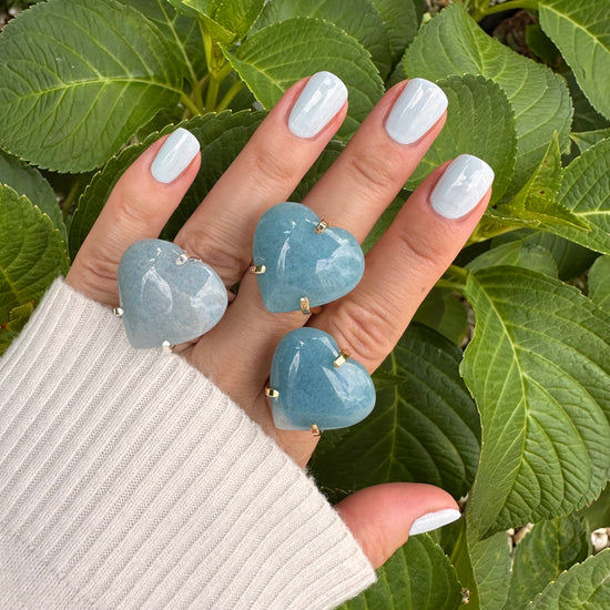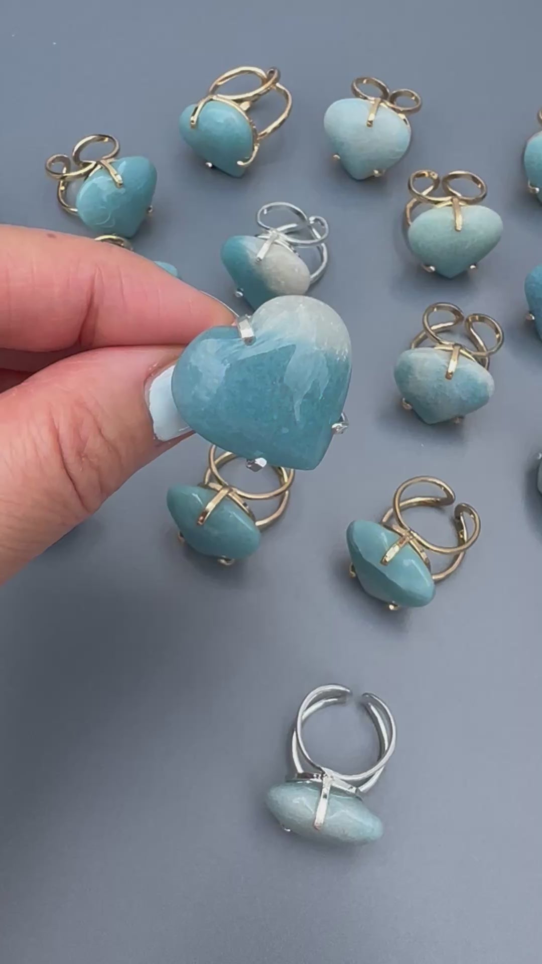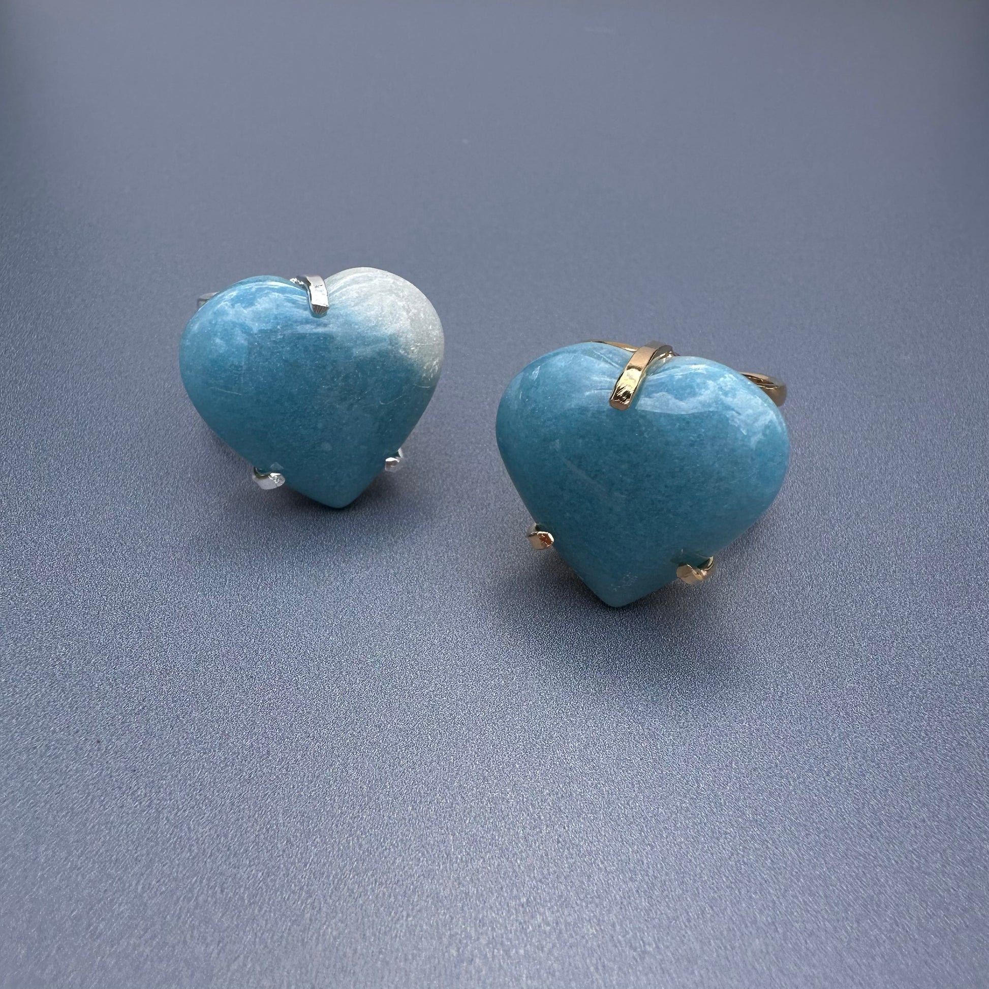 Gemstone: Paraiba blue quartz Gemstone shape: heart cabochon Gemstone source: natural Gemstone mining country: State of Paraiba, Brazil Cabochon size: 2.5 cm Band material (gold band): 18 karat gold plated brass Band material (silver band): 1000 silver plated brass Ring band size: adjustable Comes with a designer box