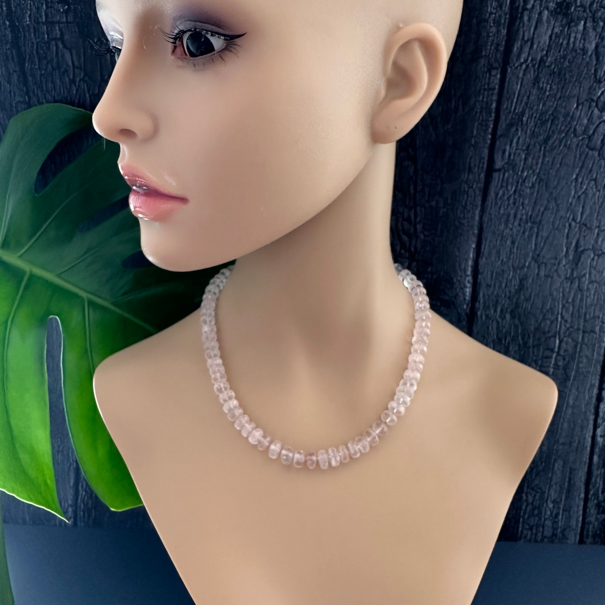 Rose quartz rondelle knotted necklace