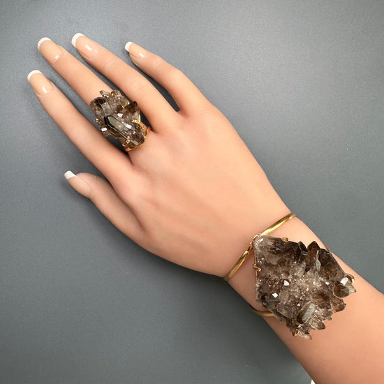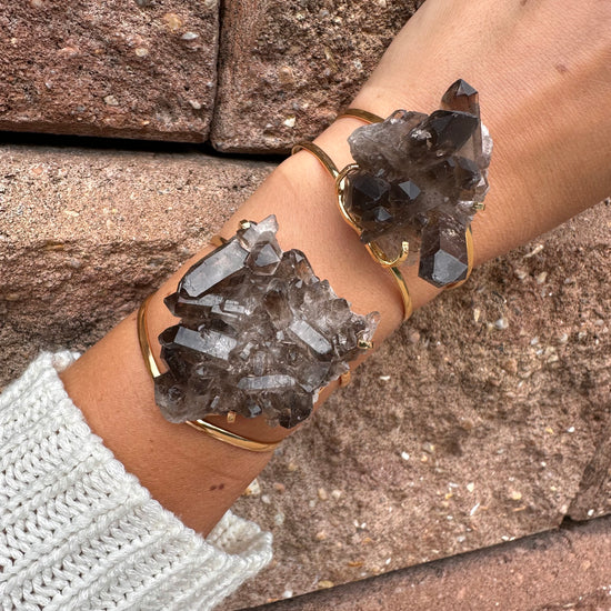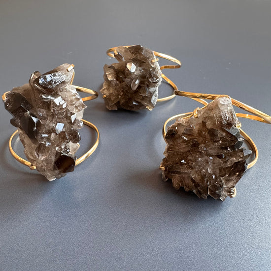 Smoky quartz cluster cuff bracelet