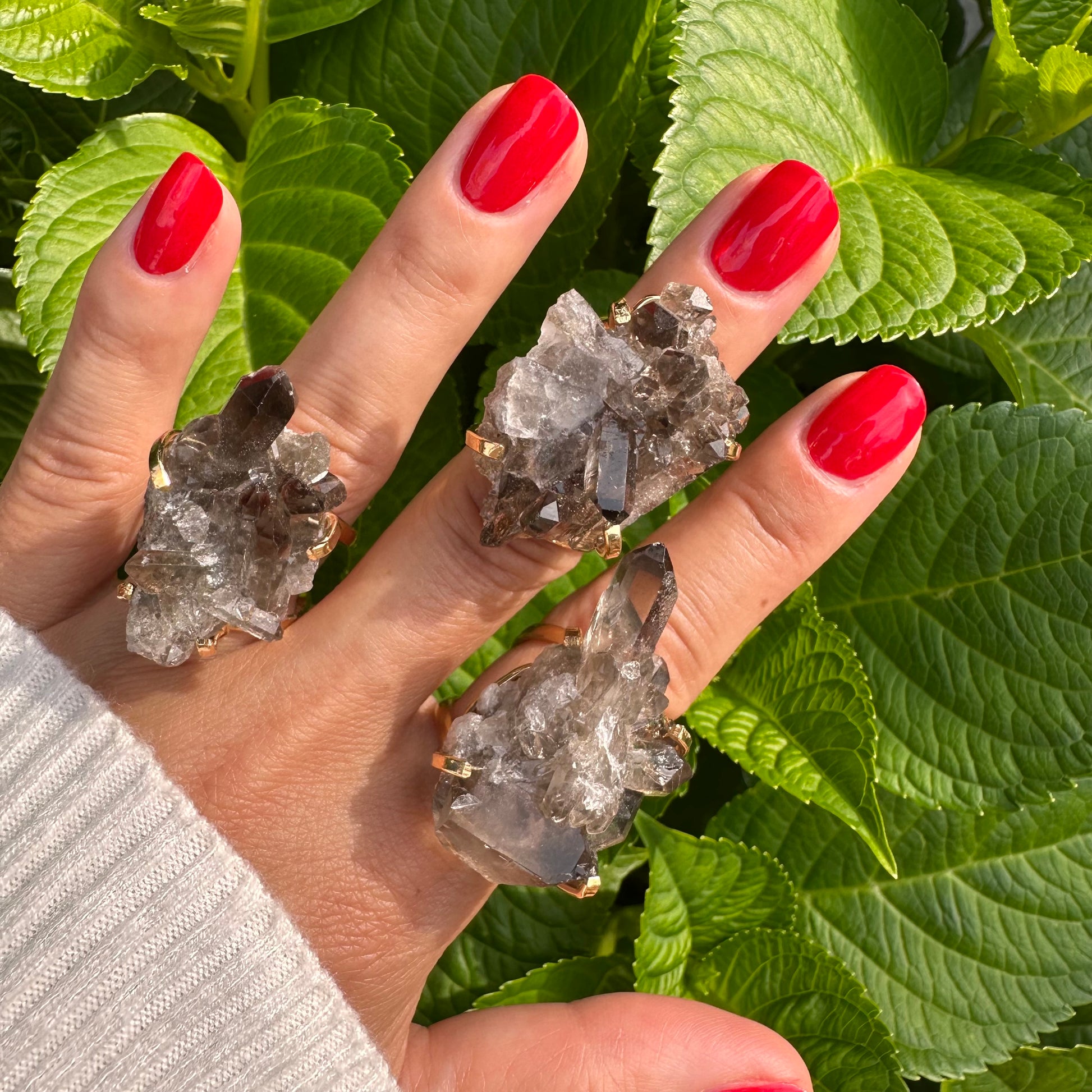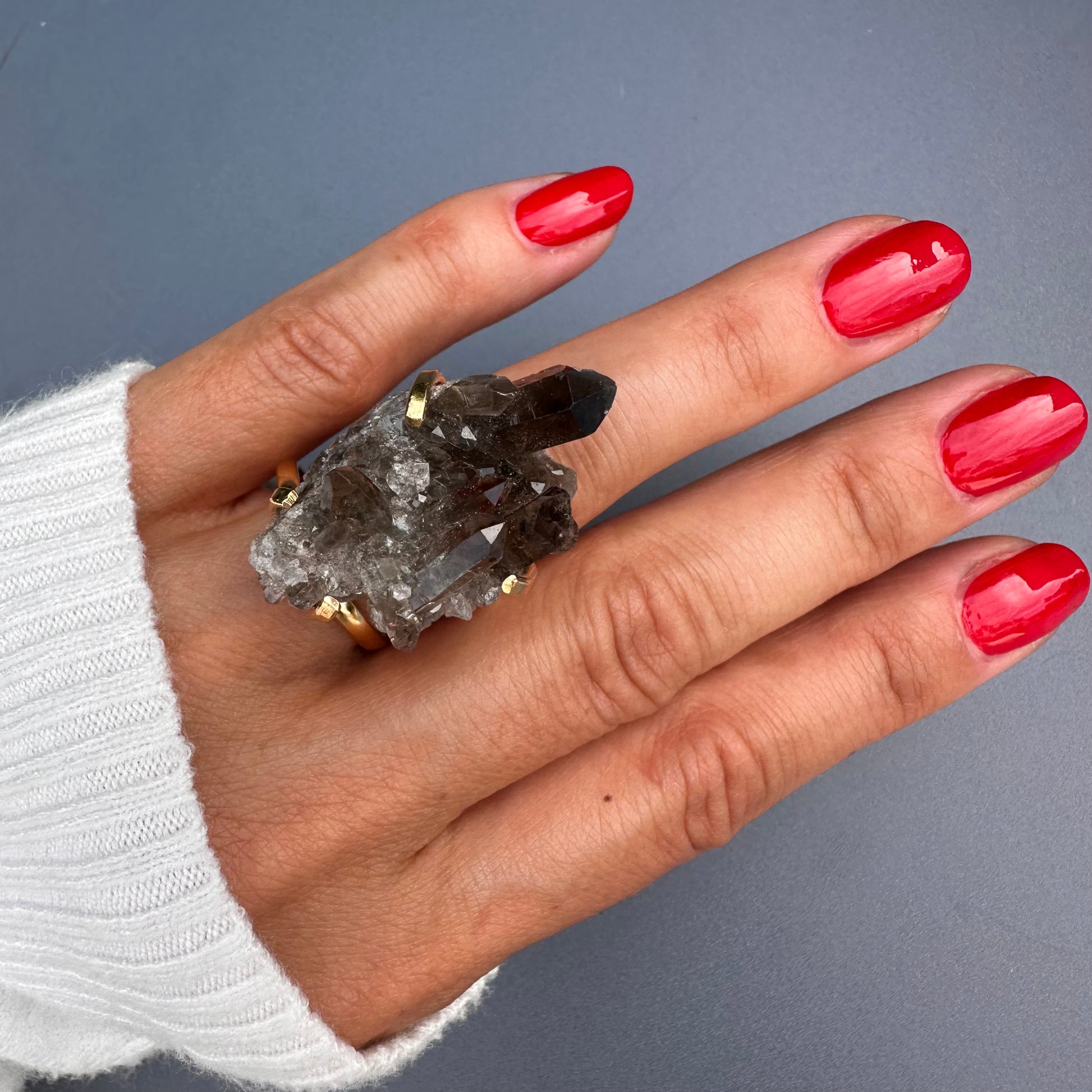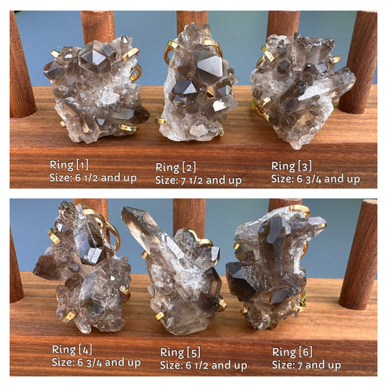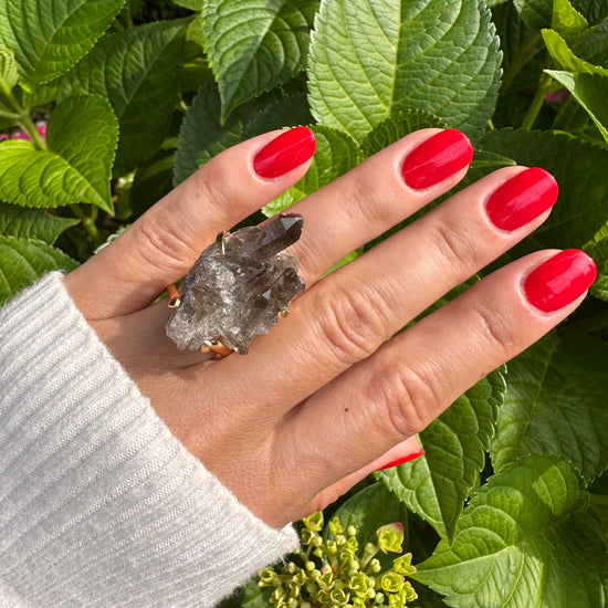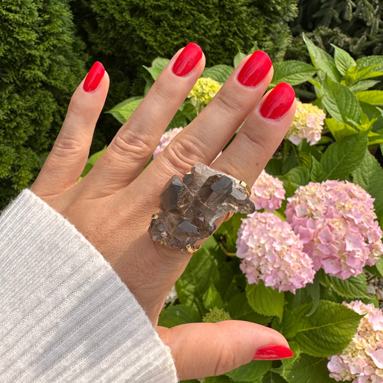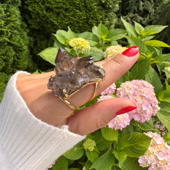 Smoky quartz cluster ring