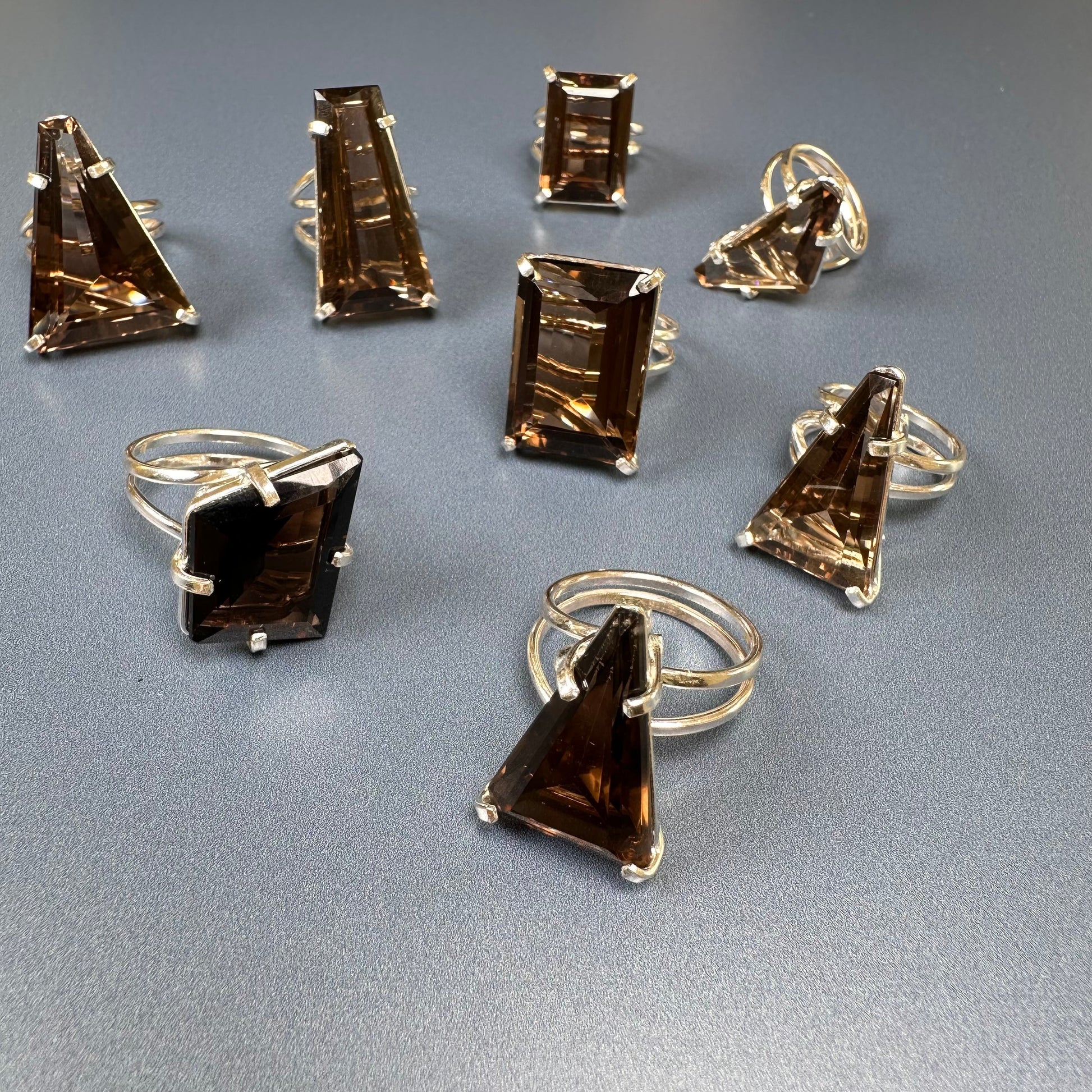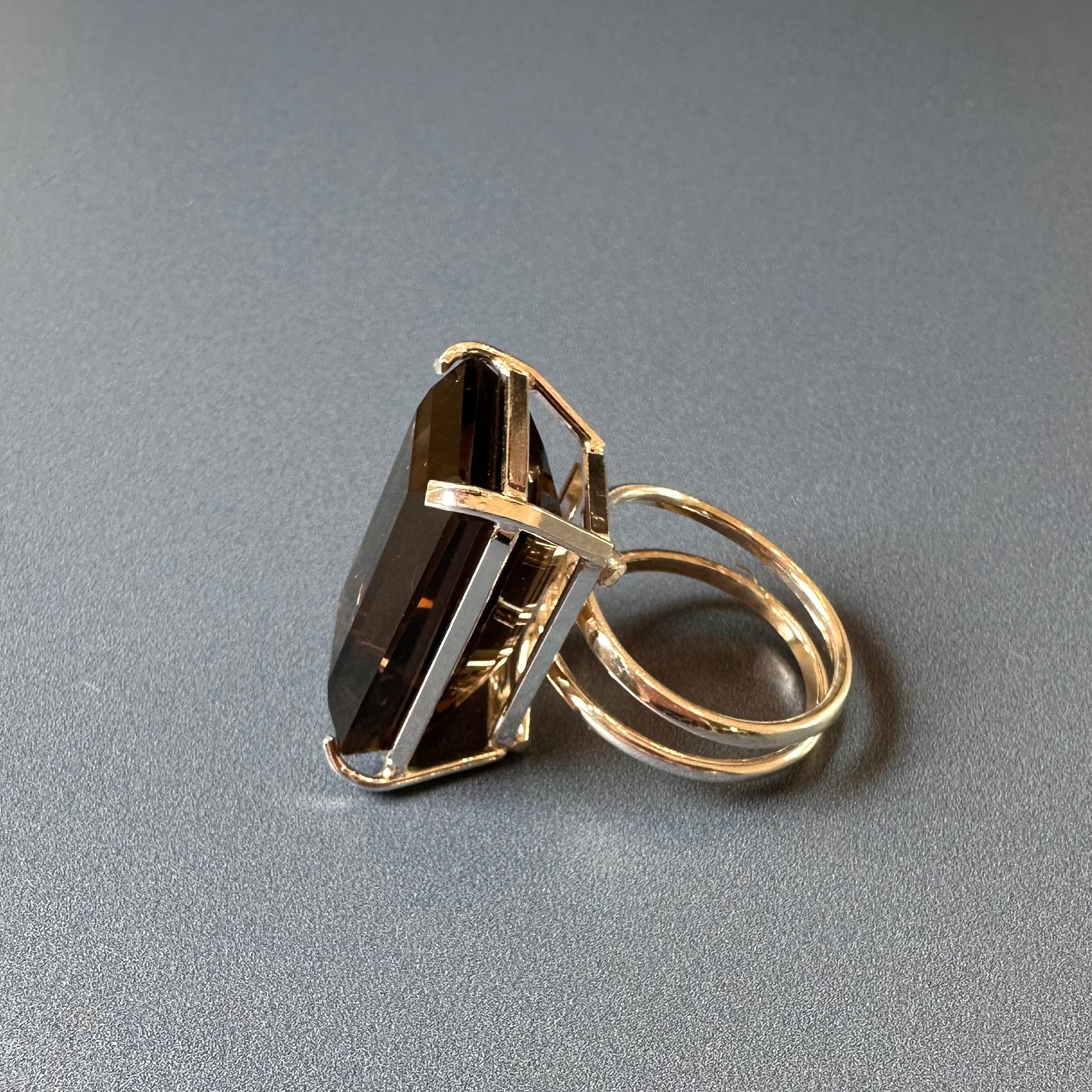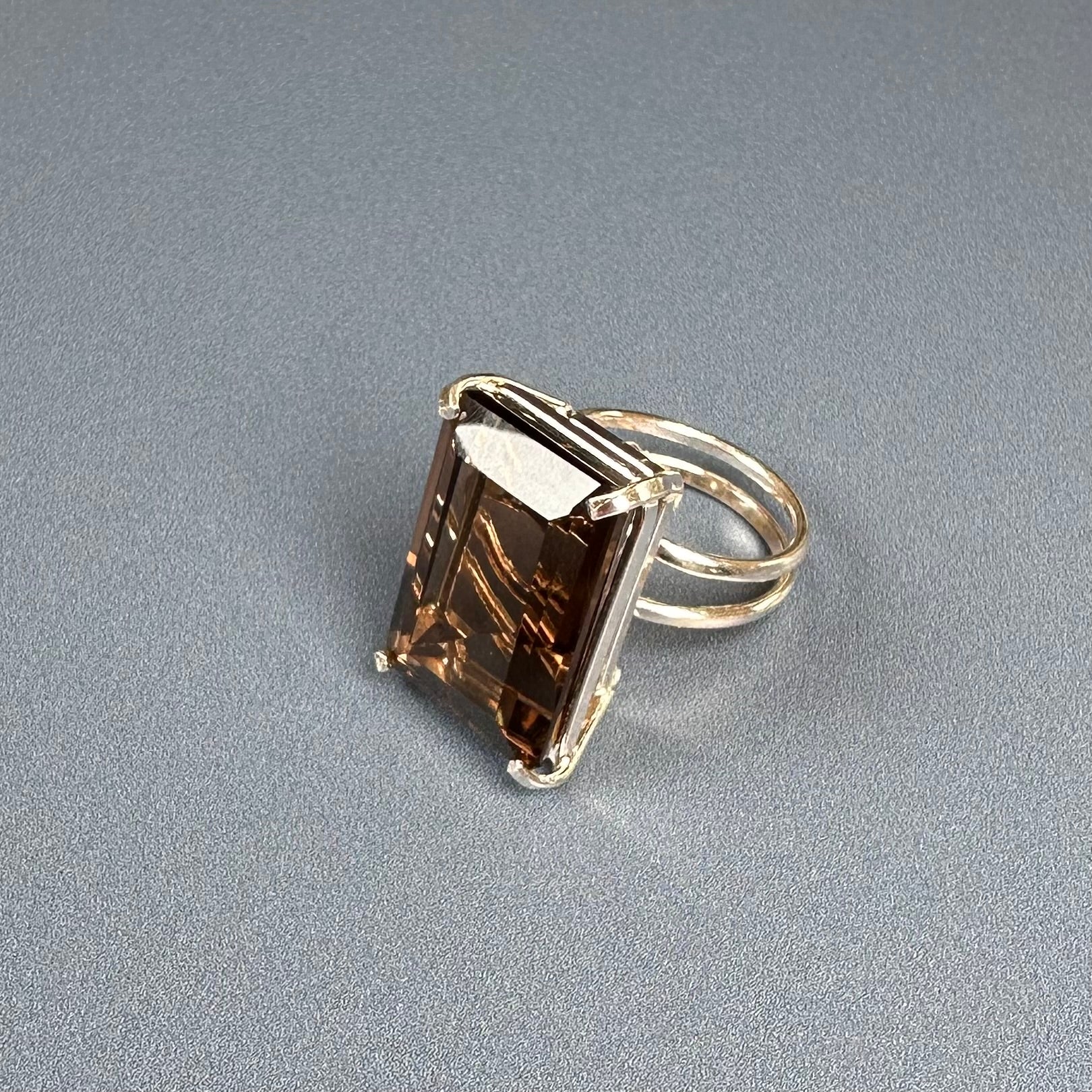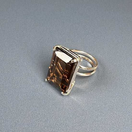 Smoky quartz cut stone ring