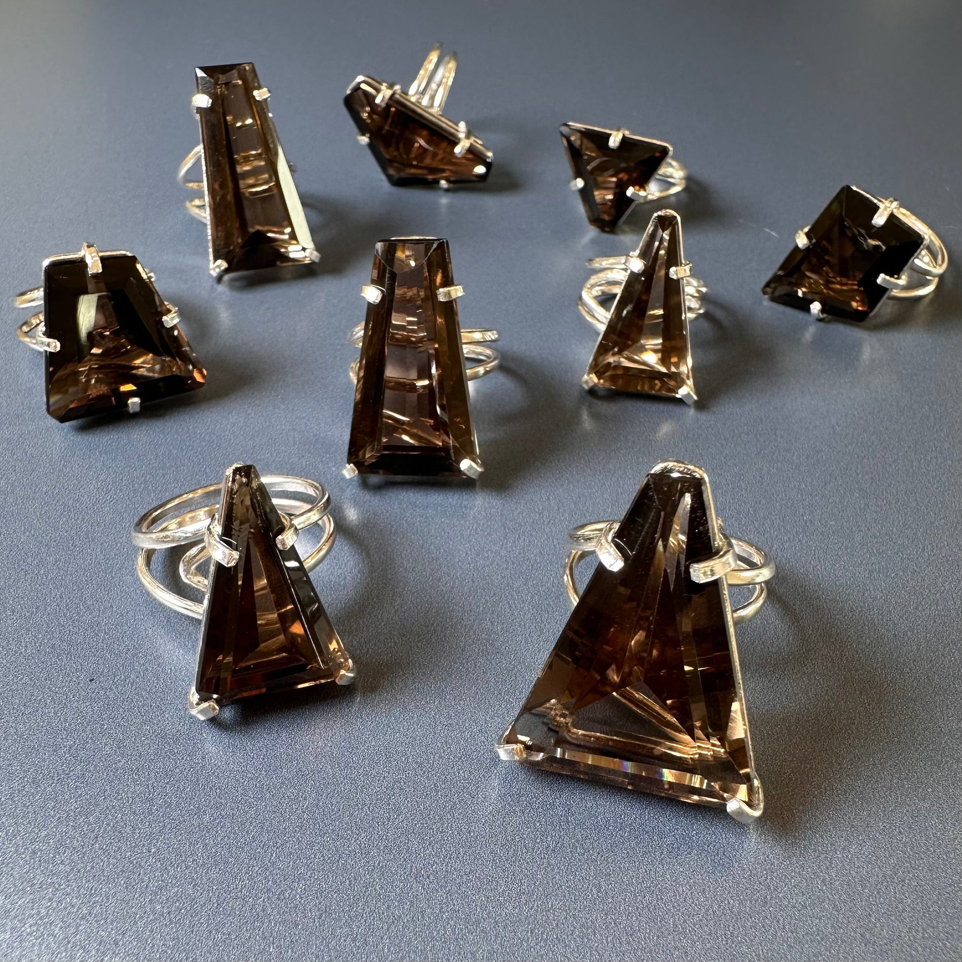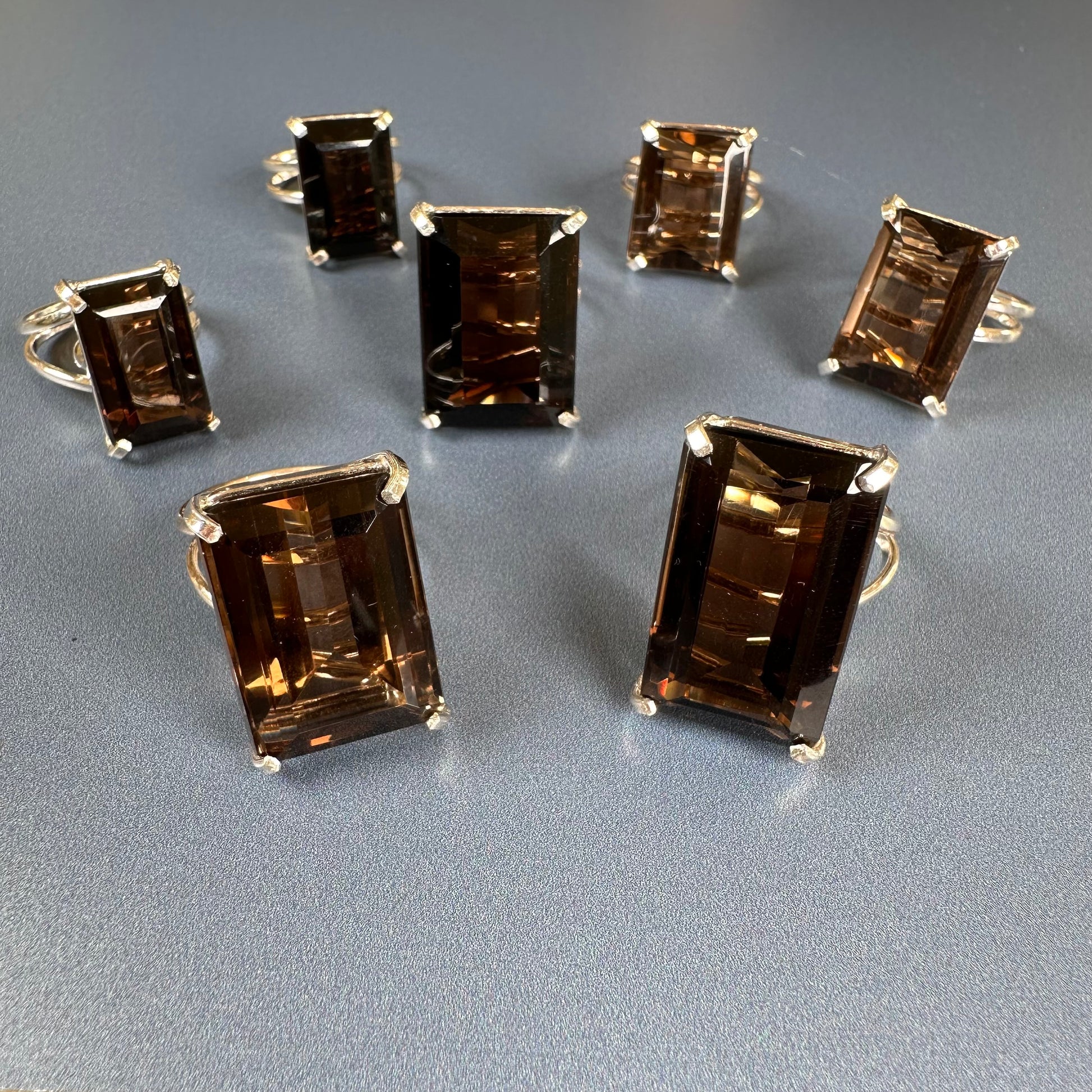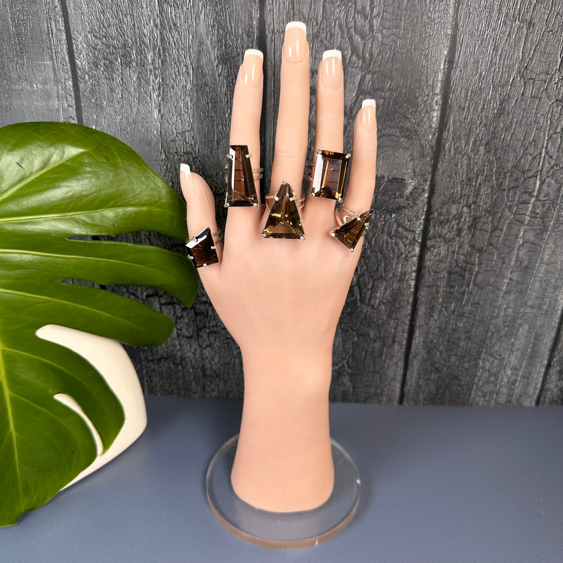 Smoky quartz cut stone ring